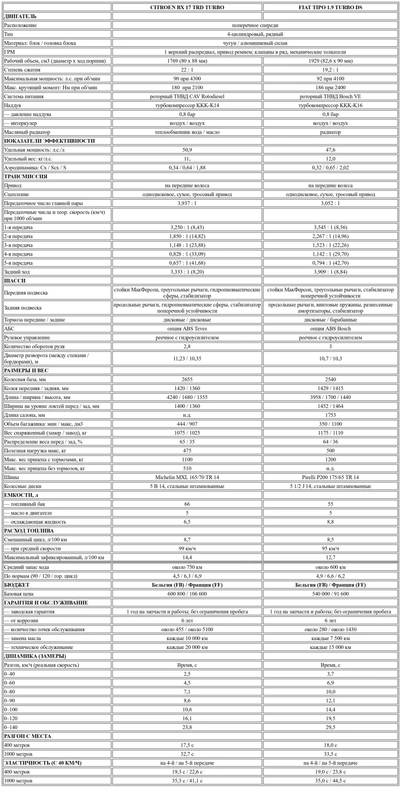 Перевод теста-сравнения Citroen BX TRD Turbo vs Fiat Tipo 1.9 Turbo DS от бельгийского автомобильного журнального издания Le Moniteur de l’Automobile, № 913, Ноябрь, 1988.