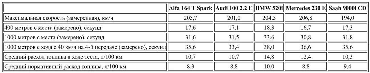 Стоит ли разочаровываться в этих цифрах? Безусловно, на фоне заявленных значений — да. Но подчеркнем еще раз: перед нами не спорткар, а просторный седан с более «гражданским» характером. По сравнению с 75 Twin Spark, которая легче на 80 кг, новинка показывает примерно то же время (за исключением разгона до 100 км/ч, где определяющую роль играет пробуксовка). Зато по максимальной скорости 164-я выигрывает благодаря лучшей аэродинамике. В сравнении с внешними конкурентами 164-й точно не в чем себя упрекнуть, учитывая ее габариты и цену. Но зачем Alfa Romeo плодит столь фантастические цифры в буклетах? Так было с 75 T.S., в меньшей степени — со 164 V6. Субъективно же 164 T.S. никогда не кажется анемичной.