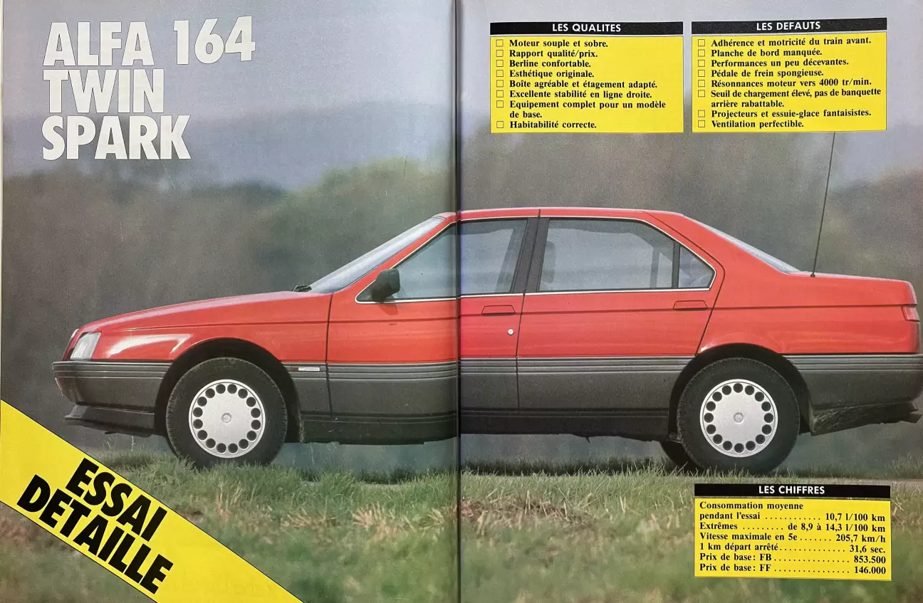 Перевод теста Alfa Romeo 164 Twin Spark от бельгийского автомобильного журнального издания Le Moniteur de l’Automobile, № 914, Декабрь, 1988.