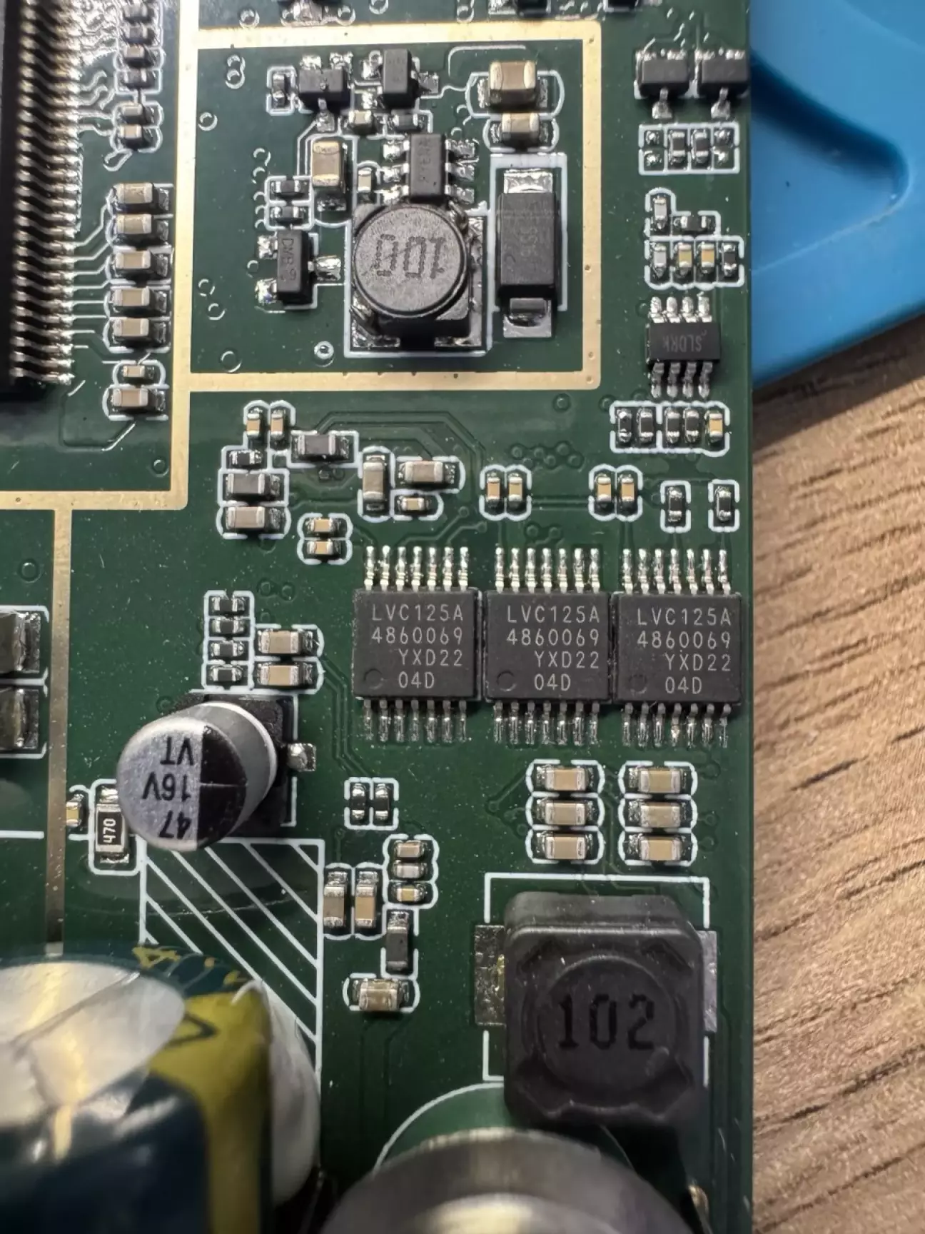 Точне призначення наступних мікросхем не встановив. LVC125A — це 4-канальний буферний інвертор (або 3-станний буфер). Використовується для посилення сигналу, узгодження рівнів напруги або керування потоком даних між іншими компонентами. По розміщенню - частина звукового тракту, схоже на прослойку між операційними і основним підсилювачем. Може є знаючі, підкажуть тут в коментарях.