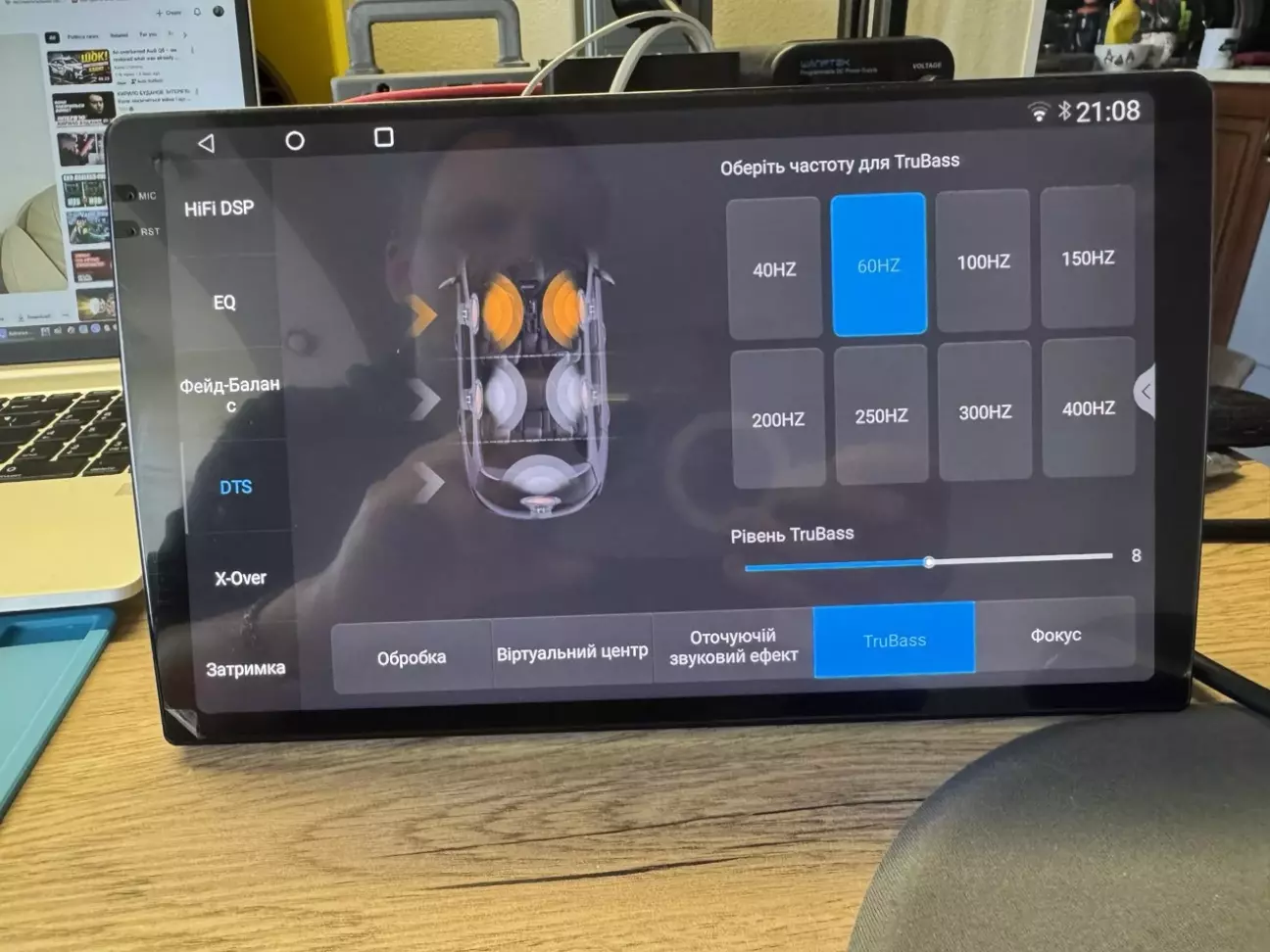 По звуку потужний додаток. Можна задати конфігурацію до 5.1, звісно, це стосується лінійних виходів, високий сигнал - на 4 динаміки, тим не менше це налаштування на нього теж має вплив