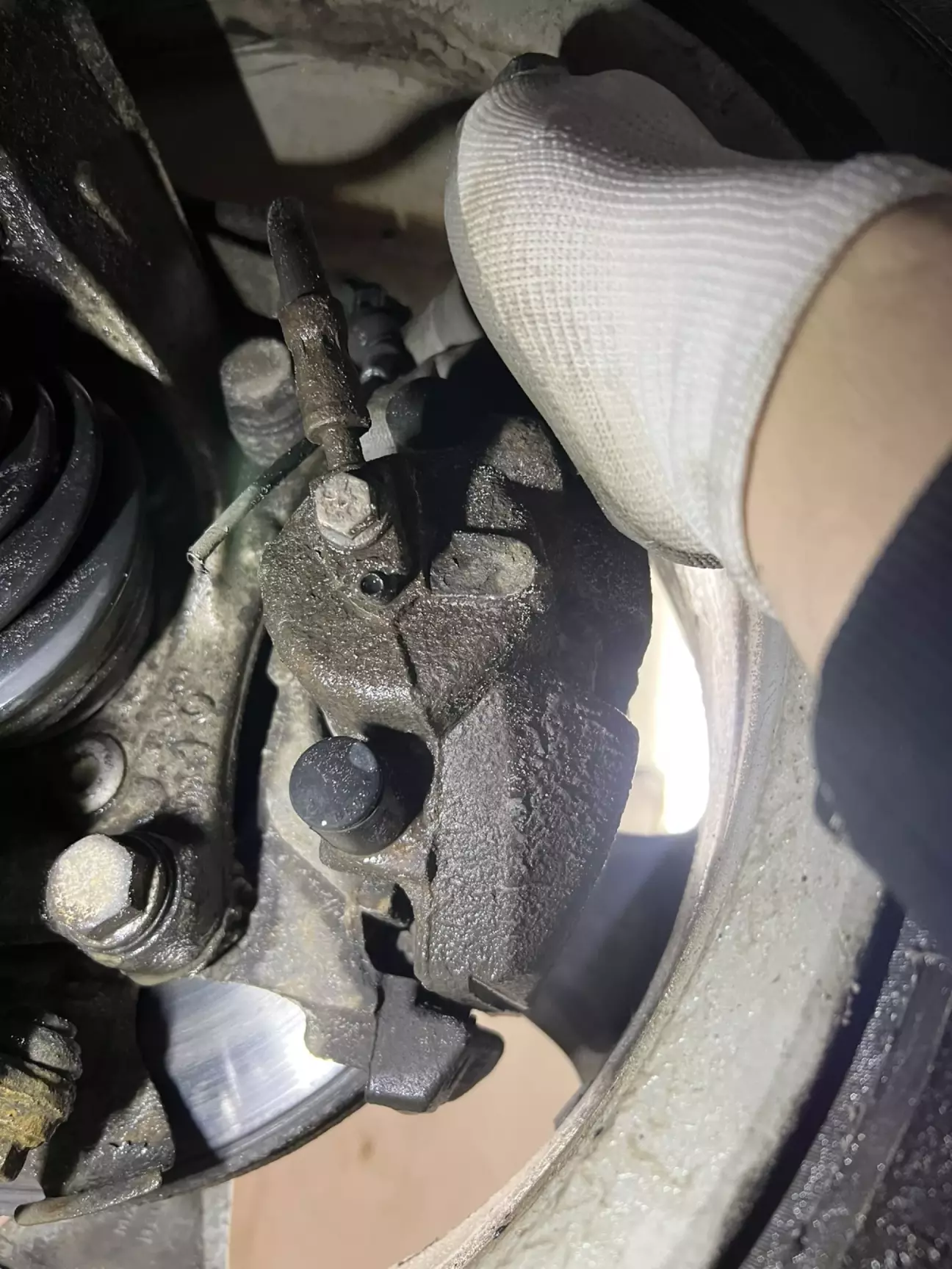 "НО" подкралось незаметно, при осмотре было ясно что диски уже свое отжили, колодки бы ещё походили, но сами тормозные диски уже закончились, решено менять на новые вместе с уолодками, так же обнаружил что левый ШРУС начал клацать при вывороте, и он свое отжил. Зима дала о себе знать
