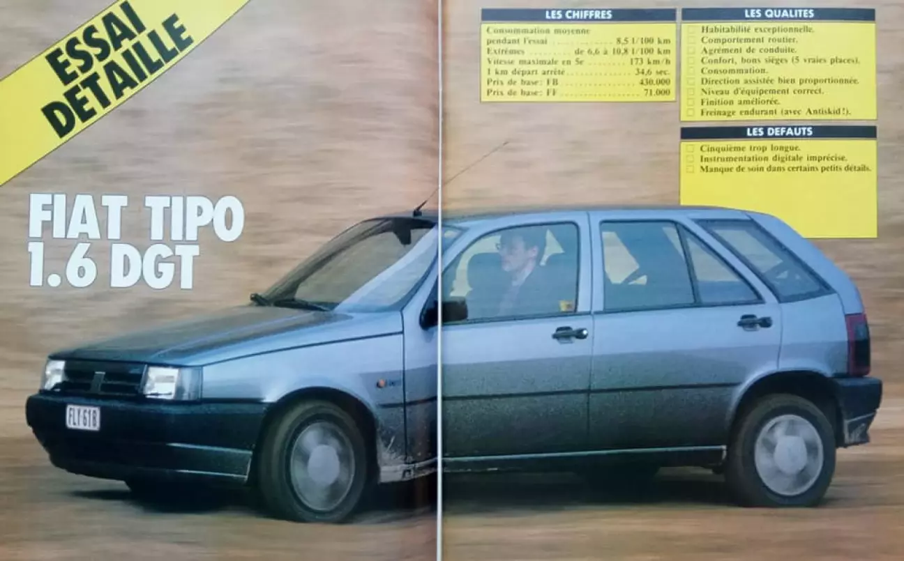 Перевод теста Fiat Tipo 1.6 DGT от бельгийского автомобильного журнального издания Le Moniteur de l’Automobile, № 919, Февраль, 1989.
