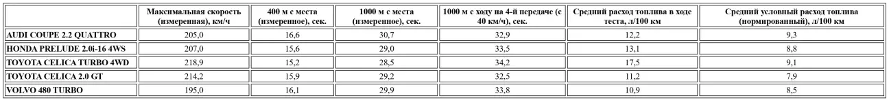 Несмотря на небольшие различия в размерности шин (205/60 на 15-дюймовых дисках вместо 195/60 на 14-х, идущих в базе на седане 90 Quattro), в подборе передаточных чисел (хотя главная пара осталась прежней), одну единицу штрафа к коэффициенту Cx в угоду стилю и лишние полкило на каждую лошадиную силу, принесенные на алтарь жесткости, наша Coupé 2.2 Quattro повторяет показатели аналогичного седана. В общих чертах она воспроизводит «буржуазные кульбиты» своего четырехдверного собрата и даже немного выигрывает в эластичности (на 1/10 быстрее на дистанции 400 м и на 4/10 — на километре, как на 4-й, так и на 5-й передаче). На старте наша «драгоценность» показывает себя чуть слабее: 9,5 сек. до сотни (это лучше, чем у Бена Джонсона... и без допинг-теста!) (Бен Джонсон — канадский спринтер, который на Олимпиаде в Сеуле в 1988 году установил мировой рекорд на дистанции 100 метров. Однако спустя всего три дня его дисквалифицировали, так как допинг-тест оказался положительным (обнаружили станозолол). — прим. перев.), 16,6 сек. на 400 м и 30,7 сек. на километре с места. Это цифры для любителей точных наук. По сути, мы имеем потенциал GTI, хотя и не дотягиваем до японских массовых купе в плане разгона. Но наша динамичная 2.2 Quattro играет на равных с Honda Prelude и Toyota Celica с 150-сильными моторами 2.0i-16 — которые несправедливо прочат в «пенсионеры» — и даже чуть лучше справляется с ускорениями с 40 км/ч. Словом, два отличных эталона виртуозности — как по мотору, так и по подбору трансмиссии. Таким образом, через сравнение с японками (с которыми, как ни крути, общего языка не искали) немецкое купе доказало свой блеск. Талант, которым наслаждаешься не в спортивной аскезе, а в приглушенной атмосфере автомобиля высшего качества. С этой точки зрения цель Audi кажется достигнутой: если злобно пародировать — Audi скорее стремится угодить любителю комфорта и жизненных благ, нежели суровому пилоту, готовому мириться с лишениями ради чистого драйва...
