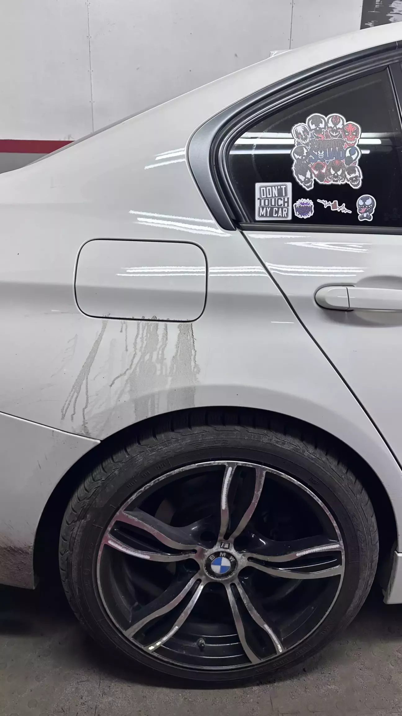 В мене вже подібне бувало, але прям настільки - ні…Заправляюсь в більшості на Socar. Всі вже звикли, що на заправках є оператори АЗК (заправщики) які беруть на себе відповідальність за пістолет з колонки і в більшості вже має бути рука «набита» на вставити-заправити й обережно прибрати-зачинити лючок. Так от певно не у всіх це виходить..Мужчинка що заправляв - то привітний був, але от з такою «красою» їздити - не прикольно ☹️ При чому помітним стало не одразу. На днях заїхала на ту ж заправку, попався інший заправщик, каже - «У вас щось з лючка тече..». Кажу - «то ваш колега так заправляв мені минулого разу 😉».. «👀 Гарного дня» і пішов..