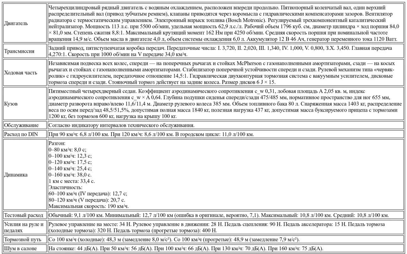 Рассматриваемая сама по себе, эта «четверка», предлагаемая в младшей третьей серии также в 1,6-литровой версии, конечно, ничуть не немощна. При слегка короткоходной схеме (диаметр цилиндра и ход поршня 84 на 81 мм) двигатель с одним верхним распредвалом развивает 113 л.с. при 5500 об/мин и достигает максимального крутящего момента в 162 Нм при 4250 об/мин. Необходимая для прямого сравнения базовая немецкая «пятерка» под названием 520i противопоставляет этим значениям следующее: 129 л.с. при 6000 об/мин и 164 Нм при 4300 об/мин. Таким образом, по максимальному крутящему моменту, несмотря на дефицит рабочего объема около 200 кубических сантиметров, «четверка» не обещает никаких потерь.