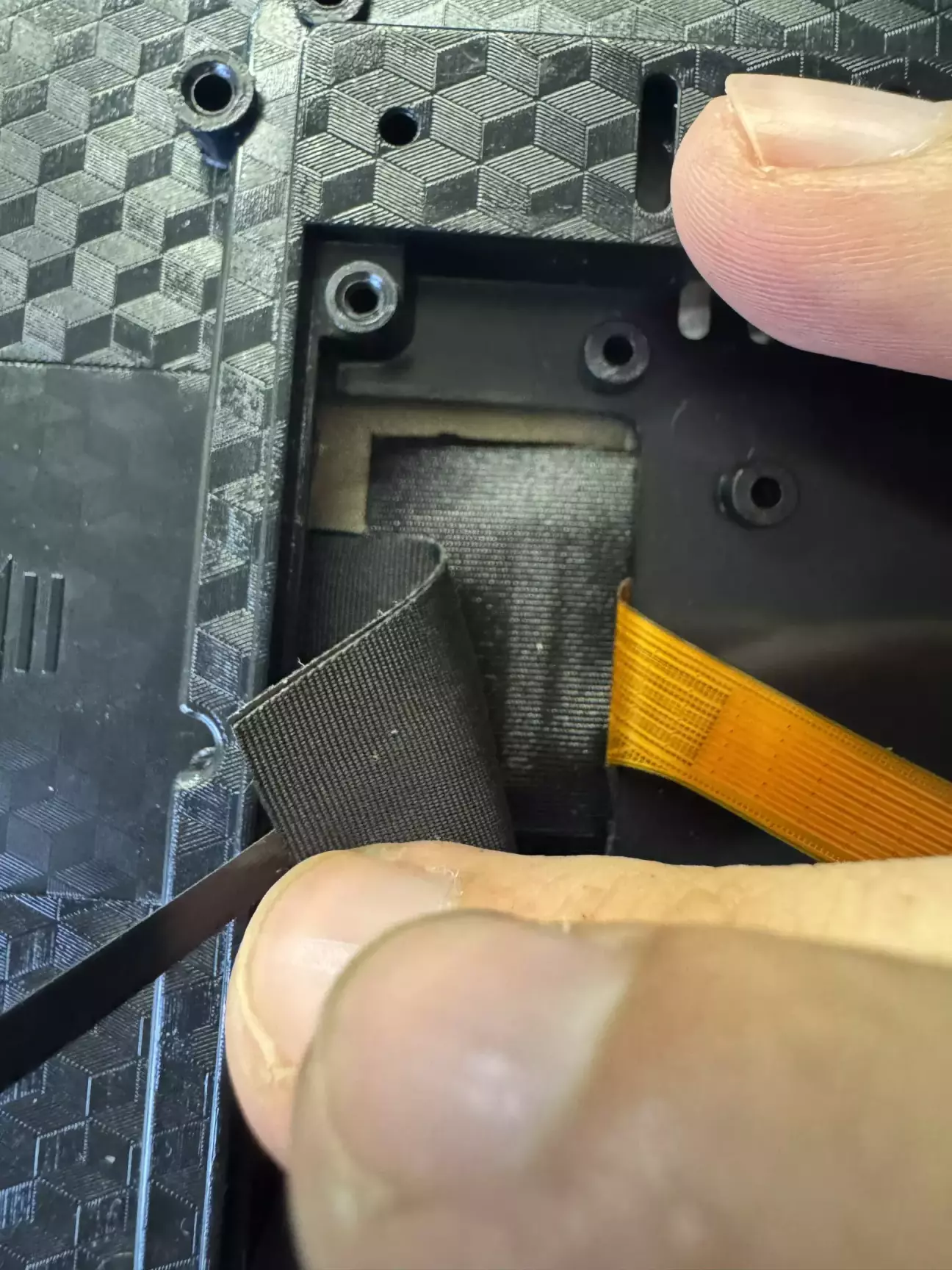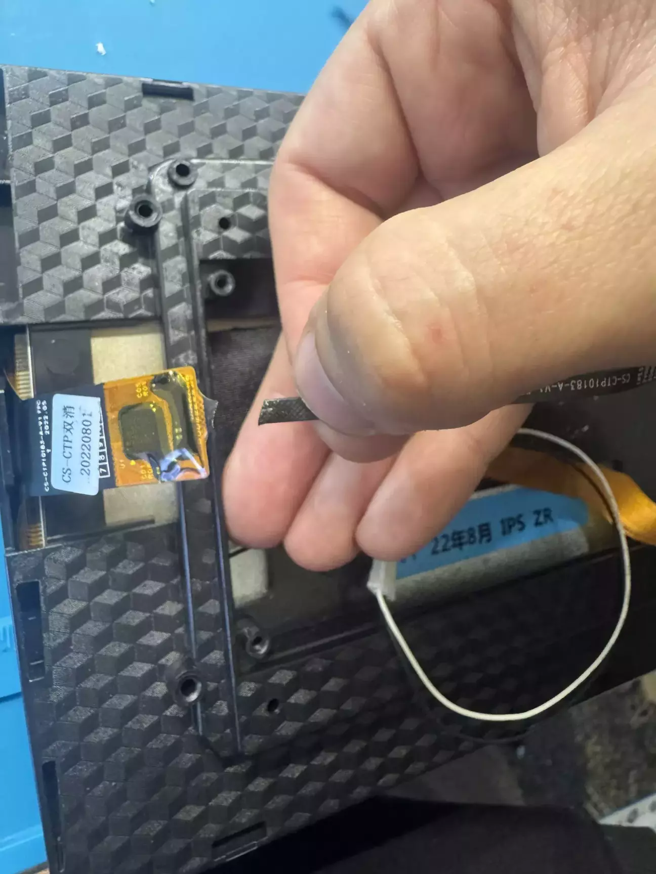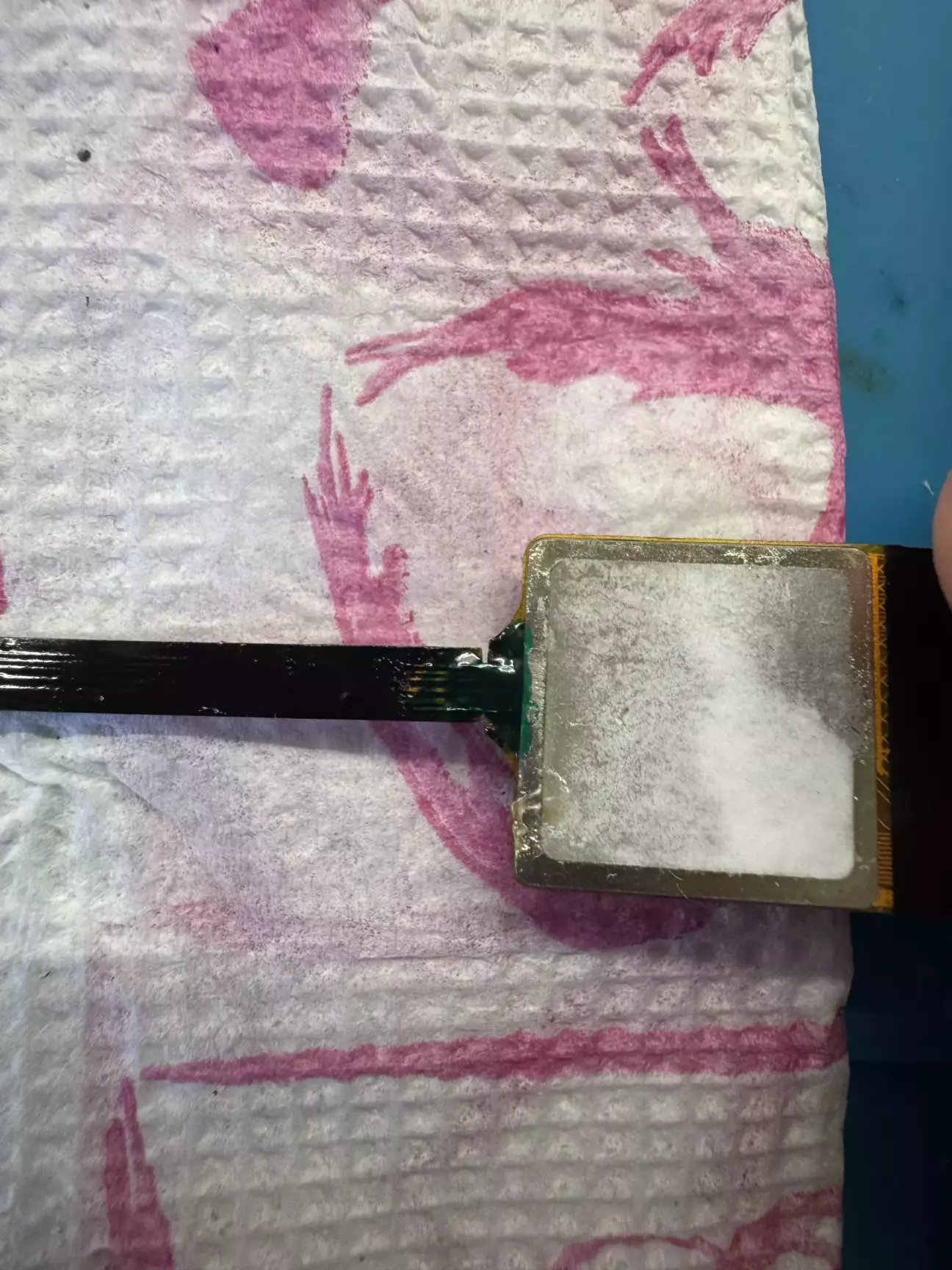 Цей екземпляр не вийняток. В попередньому дописі я казав, що з хламу підняв 2 плати і постало питання про дисплеї до них і радіатори. То ж замовник (магазин) вислав мені все щоби зробити з плат повноцінні пристрої. Цікавого там нічого немає, крім оцього: 6 піновий шлейф тачскріна був дбайливо приклеєний на малярну стрічку і був розірваний навпіл.
