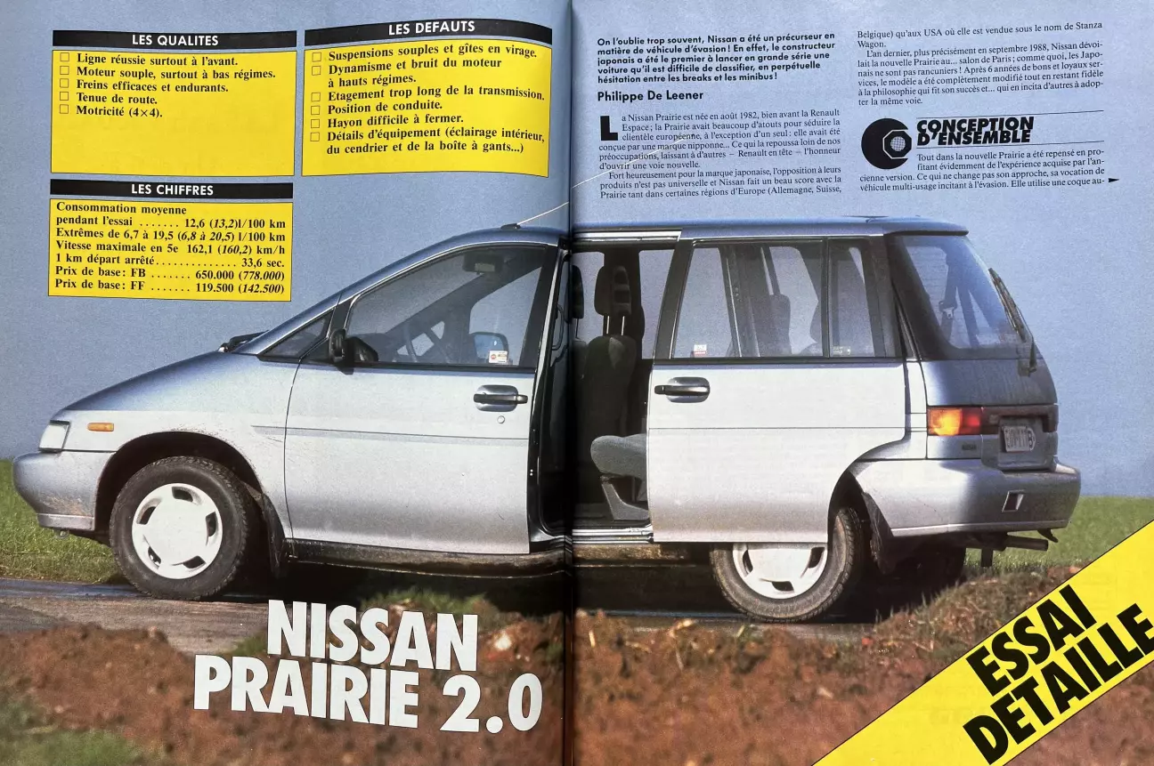 Перевод теста Nissan Prairie от бельгийского автомобильного журнального издания Le Moniteur de l’Automobile, № 923, Апрель, 1989.
