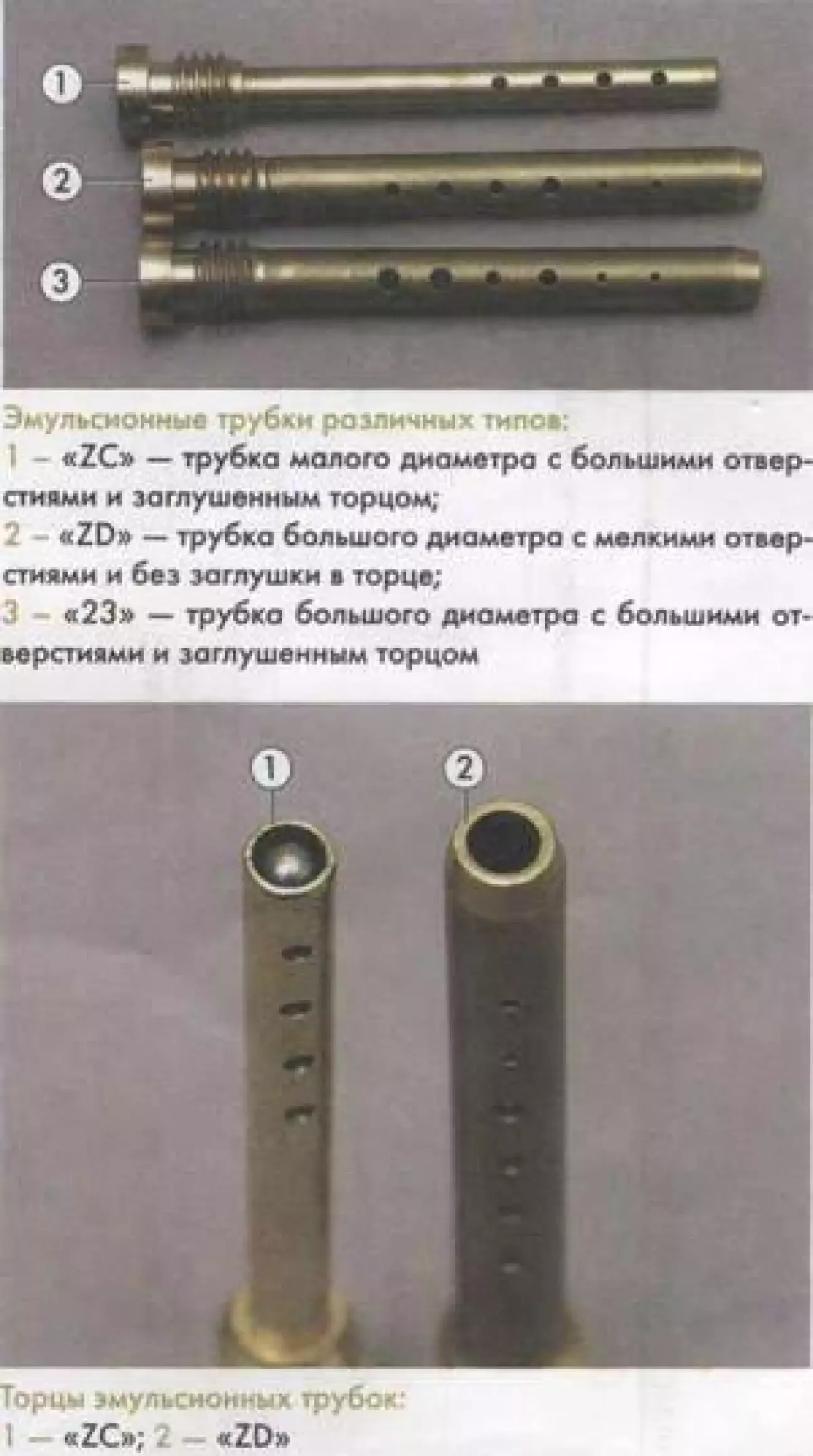 По запалюванню все теж саме, що і вишче. Тут річ теж в ємульсіонках. Річ у тім, що є емульсіонки з великими отворами і заглушкою знизу (трубка 23), а є навпаки, вузькі отвори і без заглушки знизу (трубка ЗД). Трубка ЗЦ то для другої камери і з нею все гаразд і доробляти не треба.