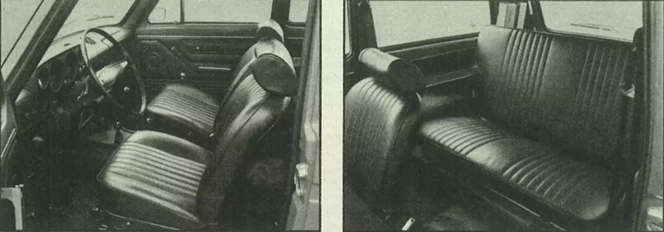 Гражданское впечатление, которое русский внедорожник оставляет у наблюдателя, сохраняется и после посадки в салон. От положения за рулем до отделки пассажирского отсека здесь ожидает привычная по легковым машинам картина. Лишь дополнительные рычаги, торчащие из центральной консоли и отвечающие за раздаточную коробку и блокировку дифференциала, позволяют судить об особых способностях этого вездехода. Серийное оснащение включает в себя все то, к чему водители седанов успели привыкнуть за это время. Подголовники и регулируемые спинки передних сидений входят в него так же, как и инерционные ремни безопасности, тахометр, вакуумный усилитель тормозов и обогрев заднего стекла. Передняя панель выглядит аккуратной, и, за исключением примитивного управления отоплением и вентиляцией, все органы управления под рукой. Запас пространства в салоне, напротив, ограничен, учитывая компактные внешние габариты. Здесь в первую очередь достается задним пассажирам, в распоряжении которых остается лишь скромное место для ног. Объем багажника согласно нормам auto motor und sport также отмерен весьма скупо — 260 литров. Грузовой отсек можно увеличить до 608 литров, сложив заднее сиденье, но даже в этом случае Lada едва ли годится на роль перевозчика грузов, так как очень высокий порог багажника затрудняет погрузку громоздких предметов.