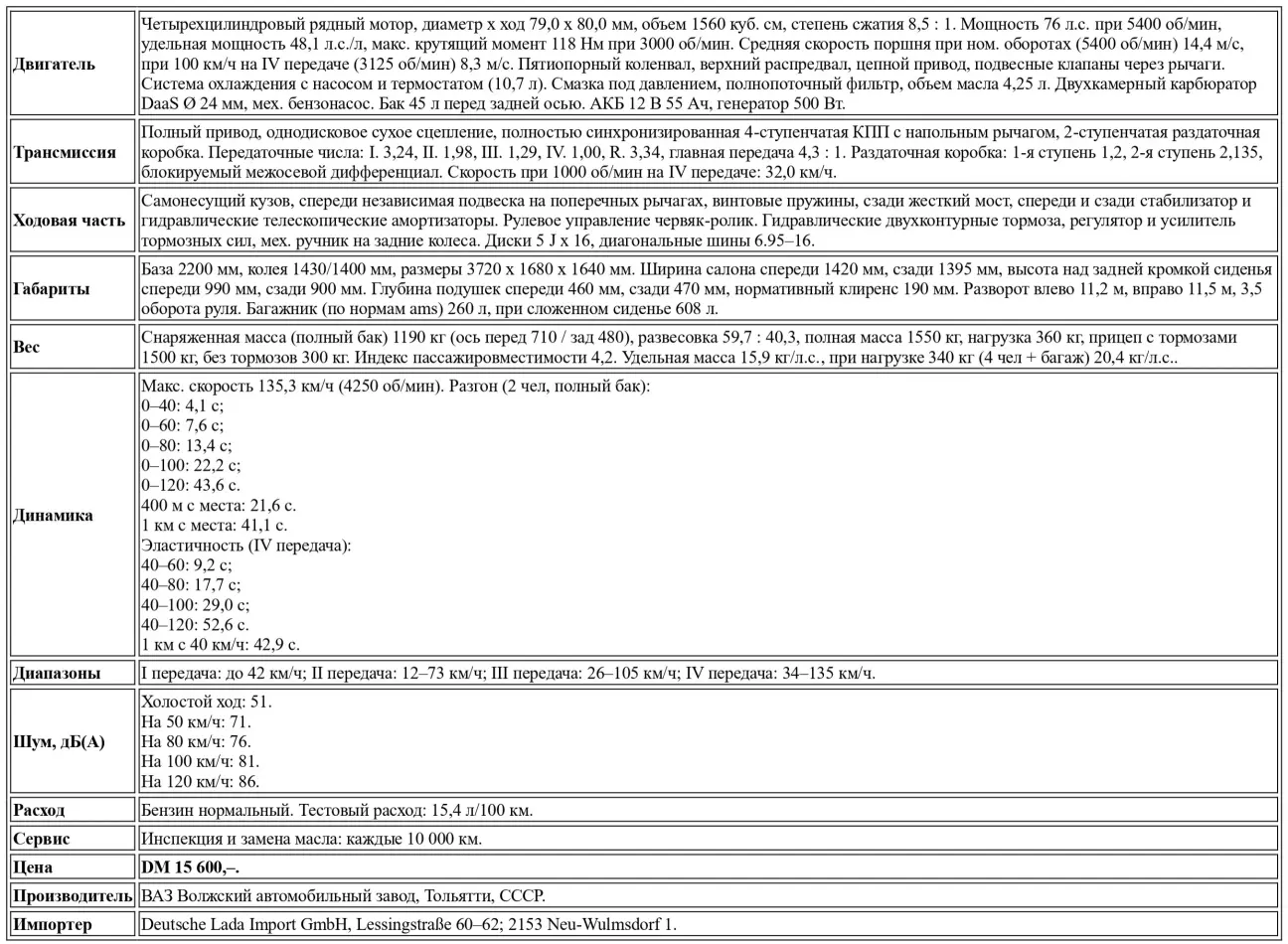 Перевод теста Lada Niva от немецкого автомобильного журнального издания Auto Motor und Sport, № 20, 1978.