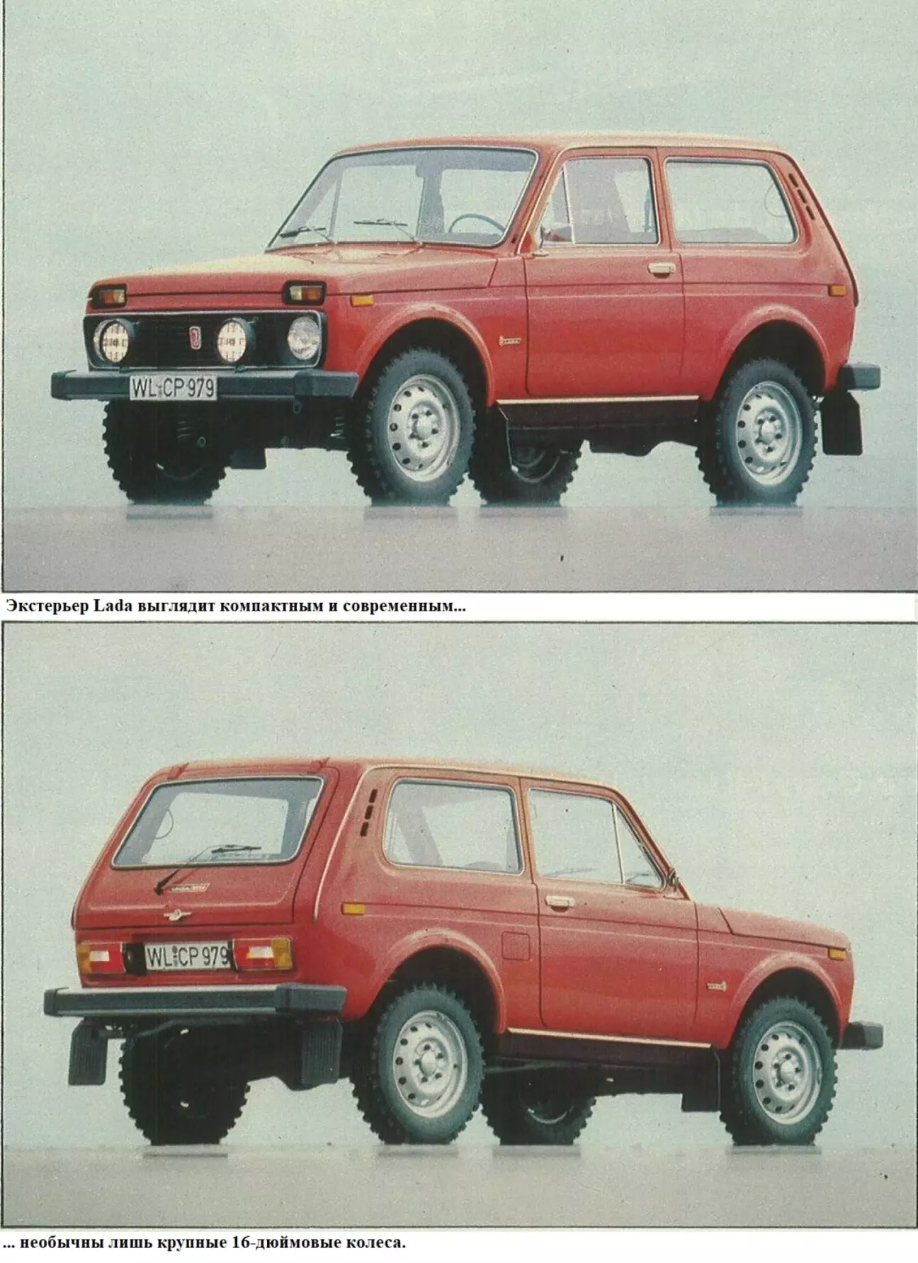 На автомобильном заводе в Тольятти на Волге инженеры принялись за работу. Впервые им довелось проектировать машину, которая не родилась на чертежных столах итальянских конструкторов Fiat в Турине. Если до сих пор им приходилось выпускать модифицированные старые модели Fiat под маркой Lada, то теперь они получили право воплотить собственные идеи. В соответствии с назначением свою первую самостоятельную разработку они окрестили Niva — в переводе на немецкий: спелое хлебное поле. Инспекторский автомобиль получил опрятный, легковой экстерьер, в котором едва угадывается восточноевропейское происхождение. Скорее Lada Niva напоминает подросший западный компактный автомобиль. Так, со своими крупными 16-дюймовыми колесами и коротким кузовом хэтчбек длиной 3,72 метра она похожа на VW Golf на ходулях. При примерно равной длине она превосходит его по высоте добрых 20 сантиметров.