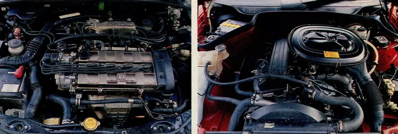 Достойные примеры подстегивают к подражанию. И поскольку модели Mercedes для многих жителей ФРГ являются мерилом всех автомобильных ценностей, некоторые производители пытаются дотянуться до звезд. Одни делают это скрытно, другие — во всеуслышание. К последним относится фирма Honda. В высшем среднем классе фурор должна произвести Honda Accord — автомобиль, который в топовой версии носит длинное дополнительное обозначение EX 2.0i-16. Эта аббревиатура скрывает двухлитровый двигатель, который из четырех цилиндров с четырьмя клапанами на каждый извлекает 137 л.с. Подобные данные поначалу намекают на безоблачную любовь к высоким оборотам. Однако и тяговитость впечатляет, так как кривая крутящего момента проходит экстремально полого. Уже с 2500 оборотов в распоряжении находятся около девяноста процентов от пикового значения в 170 Нм. Приятное следствие для водителя: Honda предлагает напористый подхват уже с самых низов. И наоборот, этот агрегат не пасует и перед оборотами в районе 6000.
