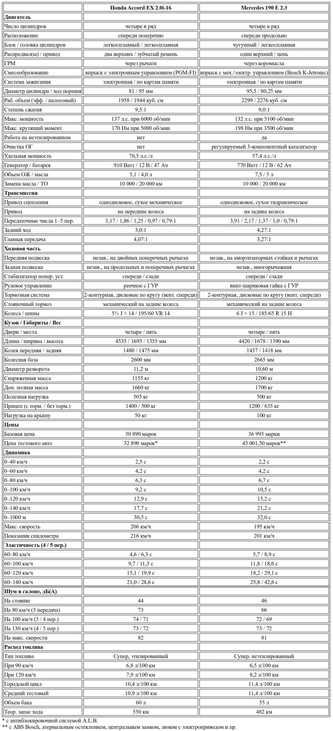 Перевод теста-сравнения Honda Accord EX 2.0i-16 vs Mercedes W201 190 E 2.3 от немецкого автомобильного журнального издания Auto Zeitung, №9 ,1987.