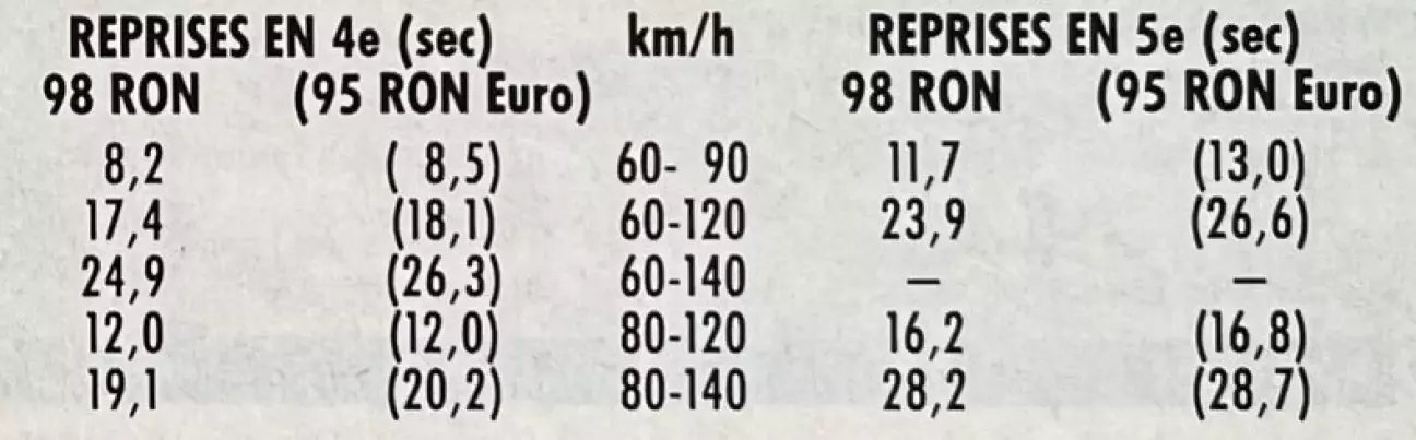 Определенно, это не ударный дуэт, сокрушающий рекорды. В очередной раз подтверждается: у Saab-Scania без турбины «турбина не крутит», а с простым атмосферником, пусть и многоклапанным, больше нет смысла надеяться поиграть в «врум-врум». Не обладая воодушевляющей бодростью, i16 по крайней мере послужил пробуждению нашего любопытства, подкрепив небольшую демонстрацию, позволяющую нам утверждать, что он становится еще более зажатым и чопорным, когда питается неэтилированным «Евро». Аргументация была бы еще более убедительной с обычным неэтилированным (91 RON), но оно еще недостаточно распространено у нас. Здесь, довольно любопытно, влияние качества бензина на потенциальную энергию двигателя отражается на ускорениях почти так же сильно, как и на эластичности.