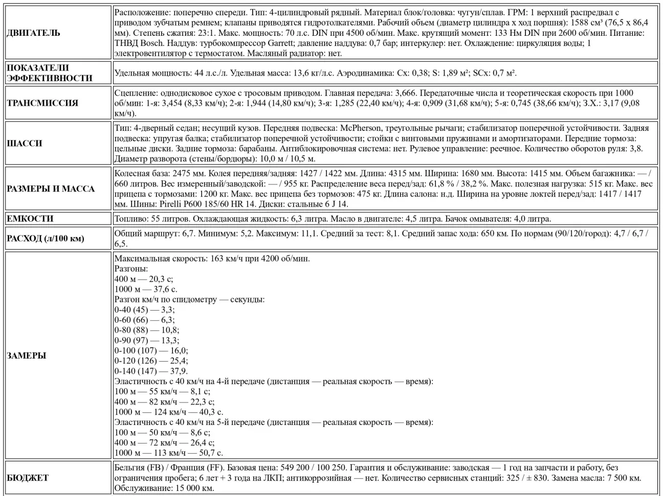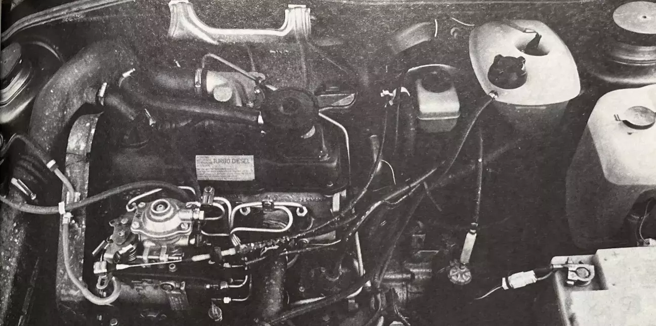 Являясь прямым производным от доблестного 1,6-литрового атмосферника, сделавшего блестящую карьеру на Golf и Jetta и пытающегося хоть как-то перемещать великолепную Audi 80, фольксвагеновский турбодизель имеет ставшую ныне банальной конструкцию с чугунным блоком и головкой из легкого сплава. Менее привычно то, что расположенный в ней распредвал приводит клапаны через гидротолкатели — редкое изыск для моторов на «тяжелом топливе», особенно малолитражных. Однако это не мешает ему на холостом ходу шуметь и вибрировать так же сильно, как добротный старый Indenor от 404-й модели. Здесь наблюдается поразительный контраст между живостью, которую он проявляет на трассе, и тем, как он заявляет о себе у светофора. Специалисты в этом вопросе наверняка будут искать причину феномена в форме камеры сгорания. Мы же ограничимся более прозаическими соображениями, напомнив, что контур наддува лишен промежуточного охладителя воздуха, чего достаточно, чтобы выдать дату рождения этого двигателя.