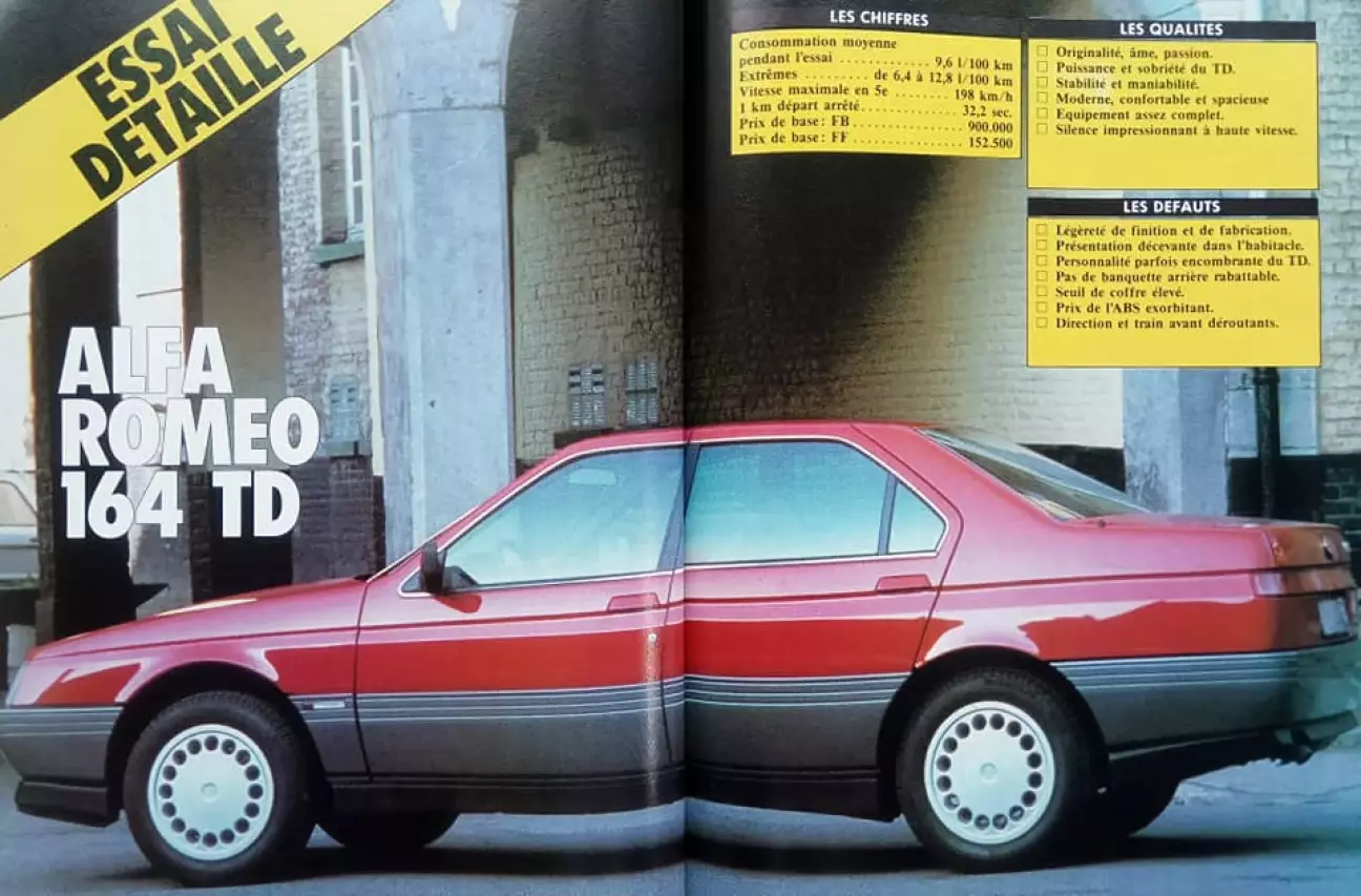 Перевод теста Alfa Romeo 164 TD от бельгийского автомобильного журнального издания Le Moniteur de l’Automobile, № 926, Май, 1989.