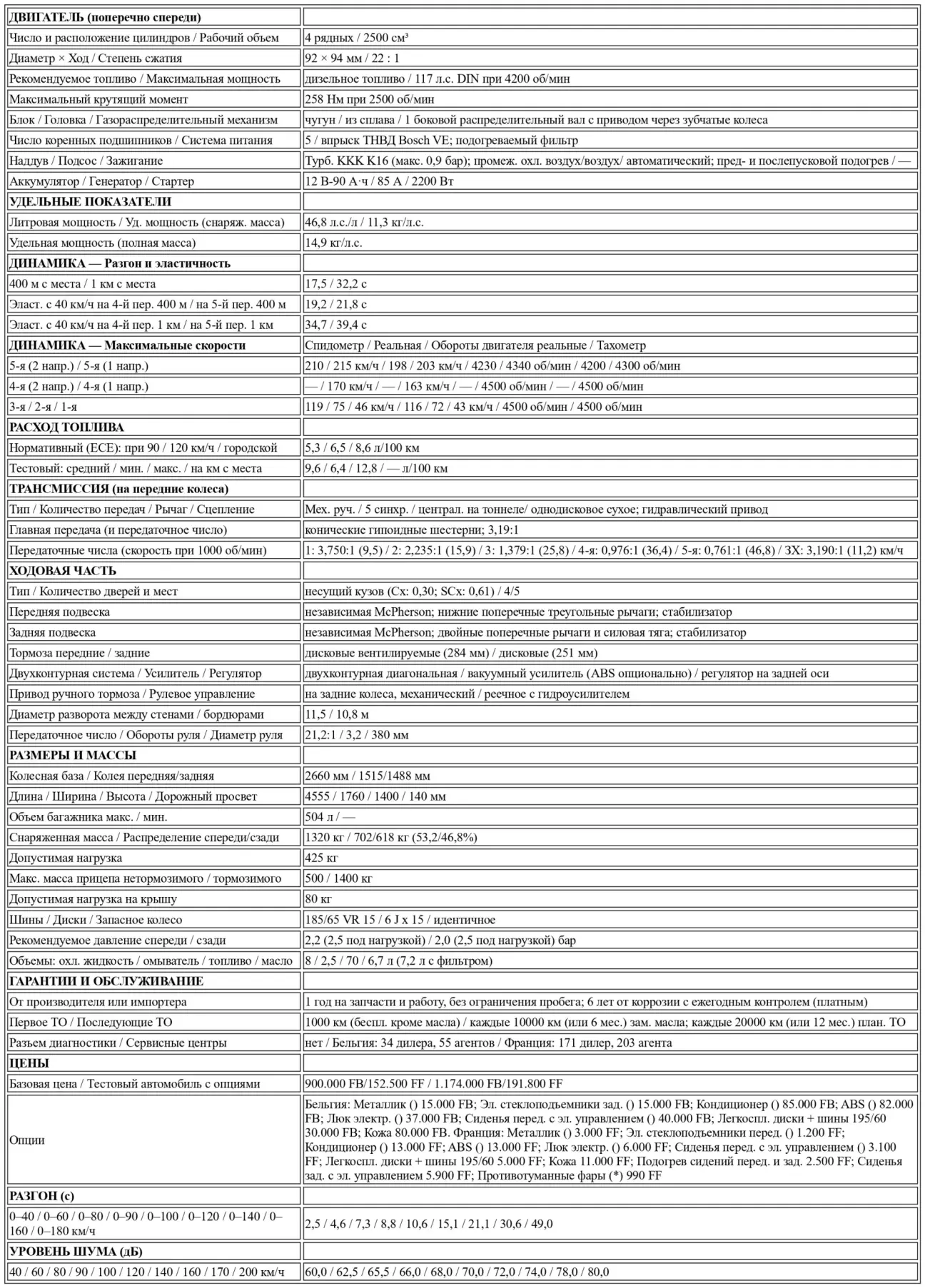 Спустя 7 месяцев после запуска 164 может, наконец, рассчитывать на услуги хорошо известного дизельного силового агрегата — двигателя VM, прошедшего модернизацию и увеличившего рабочий объем с 2400 до 2500 см³. Первая хорошая новость: версия TD требует доплаты всего в 33 000 бельгийских франков по сравнению с Twin Spark. Именно в таком расположении духа мы приступаем к детальному изучению расхода, динамики, удовольствия и комфорта вождения — словом, всего того, на что так или иначе влияет мотор. Поскольку общая концепция автомобиля остается идентичной бензиновым версиям, которые мы уже тестировали (и даже подробно разбирали в случае с V6 3 литра: см. № 910), мы остановимся только на последствиях перехода на дизельное «вероисповедание».
