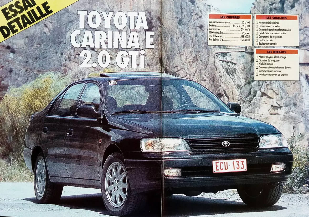 Перевод подробного теста Toyota Carina E 2.0 GTi от бельгийского автомобильного журнального издания Le Moniteur de l’Automobile, № 1011, Сентябрь, 1992.