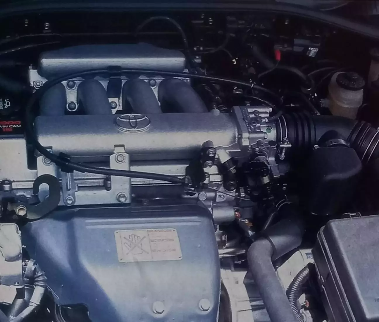 Под капотом Toyota Carina E GTI мы находим самый мощный мотор, который когда-либо знало это семейство. На самом деле это заимствование: агрегат 3S-GE (таков его код) дебютировал на Camry в 1986 году, а сегодня приводит в движение двух спортсменов в гамме — Celica 2.0 GTI и Toyota MR2. Архитектура стала классической: чугунный блок и легкосплавная головка, два верхних распредвала и 4 клапана на цилиндр. Угол развала клапанов составляет 50° — это значительно шире, чем у более спокойной 2-литровой версии (133-сильные Toyota Carina XLi/GLi), что прежде всего позволяет спроектировать максимально прямые впускные и выпускные каналы. В угоду экологии японский 2-литровый мотор теперь обременен трехкомпонентным катализатором с лямбда-зондом и системой рециркуляции отработавших газов для снижения выбросов оксидов азота. По сравнению с прежними итерациями здесь есть важные улучшения. На впуске применен механизм ACIS (Acoustic Control Induction System), регулирующий скорость потока газов. Система делит ресивер на две части; вторая перекрывается контрольным клапаном на низких и средних оборотах. Таким образом увеличивается эффективная длина впускного тракта, что усиливает эффект инерционного наддува. Когда обороты превышают отметку 5100 об/мин, клапан открывается, укорачивая путь воздуху, что способствует росту скорости потока. На практике этот переход отчетливо ощущается — не столько дополнительным подхватом, сколько на слух: после 5000 об/мин тембр двигателя становится заметно более хриплым и грубым. На этом всё, так как вся нижняя часть двигателя просто заимствована у Celica. Впускной коллектор и выпускная магистраль выполнены из нержавеющей стали — материала, который лучше противостоит высоким температурам, чем обычный чугун. К слову, сзади красуется сдвоенный выхлоп (по банке слева и справа, как на MR2), призванный подчеркнуть спортивный характер Toyota Carina E GTI и облагородить звук. Маленькое кокетство, которое обернется лишними тратами при замене глушителей.