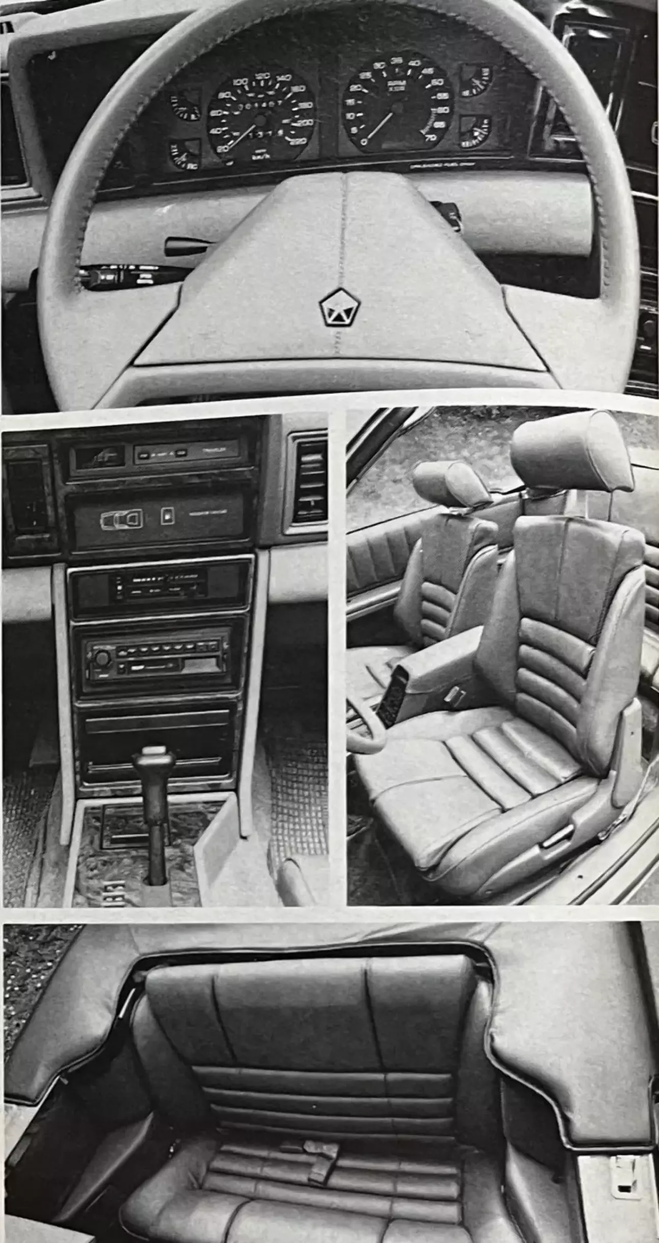 Известно, что американские рулевые рейки с усилителем характеризуются прежде всего своей мощностью. Вплоть до сведения усилия на руле к нулю. До такой степени, что он становится ватным и размывает чувство автомобиля. Оставаясь легкими по европейским меркам, усилители от Chrysler лучше сохраняют чувство дороги, чем большинство их американских аналогов. Они также быстрее и требуют меньше оборотов руля от упора до упора, чем у дедушкиного Chevy. Два с половиной оборота. Не больше! Но это то же самое «железо», что стояло на Aries: получается, шасси K уже десять лет ходят по кругу одного и того же диаметра! Ведь колесные базы тоже не изменились. Но диаметр разворота между стенами ухудшился из-за удлинения свесов у LeBaron. Регулировка колонки рычагом «tilt» весьма практична. Кабриолет 2.5 странным образом унаследовал руль без намека на класс — от Voyager. Купе повезло больше (кожаный обод и более спортивный дизайн).