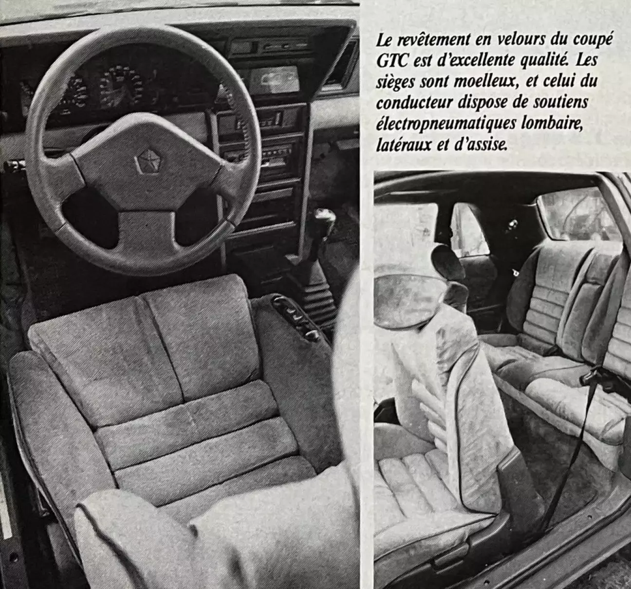 Кабриолет всё еще слишком сильно раскачивается и «козлит», когда битум начинает мимикрировать под зыбкое море: чрезмерные пробои и отскоки при наезде на крупные кочки. Передняя ось отзывается на дорожные стыки шумными ударами. К этому добавляется типичный дефект открытых машин без дуги безопасности: недостаточная жесткость кузова. Вплоть до ощущения «плавания» за рулем при прохождении разбитых участков на разумных скоростях. Немного напоминает раму мотоцикла, подверженную кручению на высоких скоростях. В общем, немного плавает, но ненамного сильнее, чем кабриолет BMW 3-й серии… С учетом длины автомобиля это действительно не катастрофично. Замечание, которое говорит не в пользу усиления кузова: открытый Chrysler, который Якокка очень гордится собирать без привлечения специализированных субподрядчиков, весит примерно столько же, сколько GTC… Закончим на хорошей ноте: курсовая устойчивость на высокой скорости остается безупречной (на гладком асфальте). Купе GTC еще больше утончило свои подвески, одновременно сделав их жестче; оно всё «в шинах» (55-й профиль на 16 дюймах, извольте!) и заметно лучше справляется с ходами сжатия и отбоя. Оно меньше кренится в поворотах и надежнее встает на дугу. Однако вес, длинная коробка и легкий руль лишают его всякого спортивного азарта и причин им пользоваться.