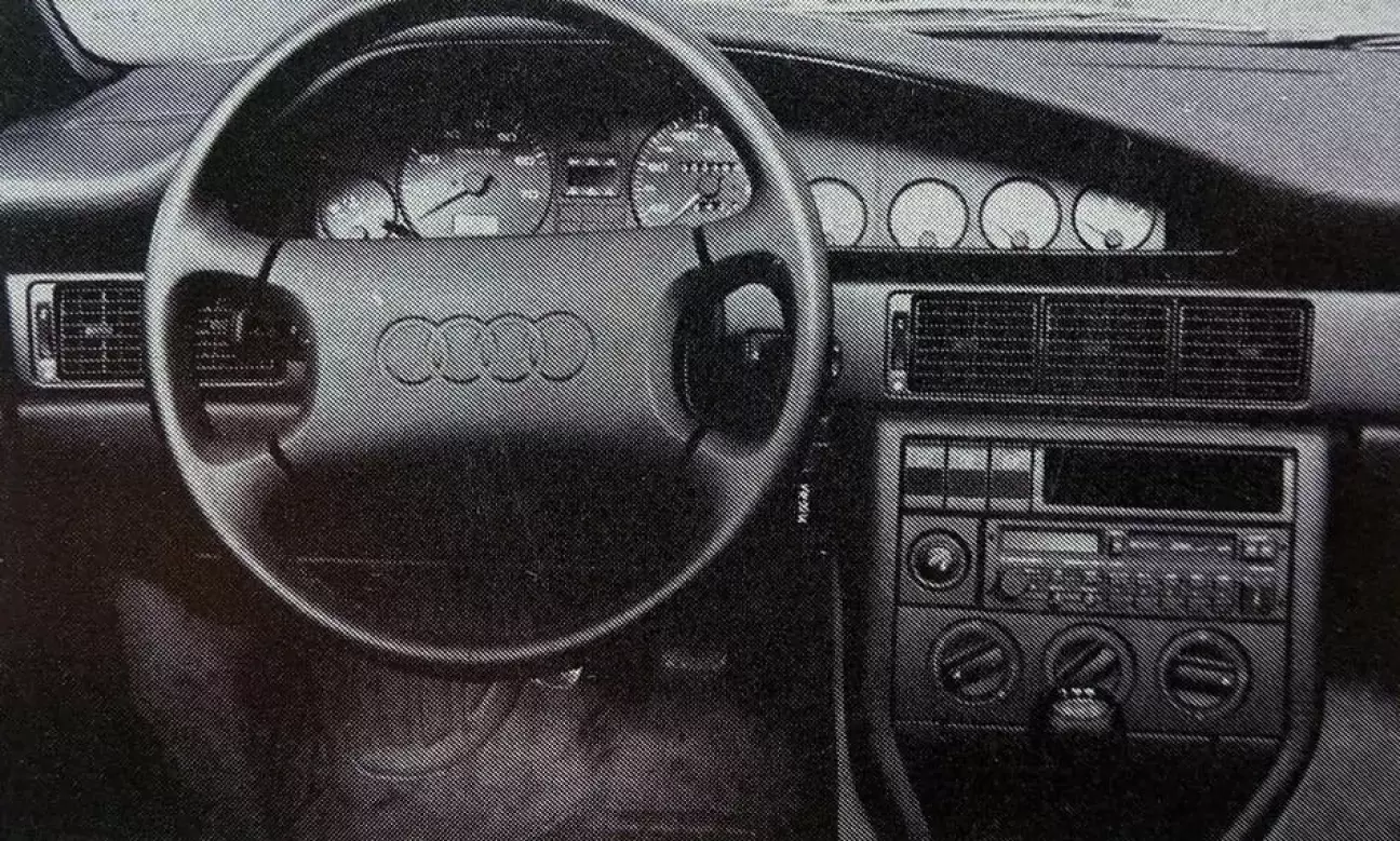 Говоря об акустических радостях, напомним, что тембр пятицилиндрового турбомотора на высоких оборотах обладает особой остротой и, во всяком случае, звучит более хрипло и агрессивно, чем мягкое урчание величественной «рядной шестерки». В любом случае, салон фильтрует эту грубость тона весьма достойно, доводя ее до приятного уху уровня. Кроме того, свист ветра и шипение больших шин на асфальте абсолютно подавлены. Последнее слово о посадке, обеспечиваемой спортивным сиденьем: она кажется нам лучшим компромиссом, достигнутым маркой на сегодняшний день. Во всяком случае, куда лучше того, что предлагают модели 80/90. В Audi 100 Turbo не нужно долго возиться с регулировкой подушки (которая работает за счет легких наклонов), чтобы удобно устроиться за рулем (обшитым кожей, но с неизменным дизайном). Хотя невысокие водители всё же не найдут здесь полного удовлетворения (массивная приборная панель, далекий педальный узел и большой, сильно смещенный назад руль, не говоря уже о том, что всё это хозяйство расположено довольно высоко). Высоким же жаловаться не на что, так как концепция органов управления и их расположение явно на их стороне. Нужно иметь длинные ноги, чтобы выжимать педали до упора, и длинные пальцы, чтобы переключать рычаги света/поворотников и дворников кончиками фаланг, не отрывая ладоней от руля. Но отсюда далеко до утверждения, что перед нами машина, внушающая опасения водителям малого роста…