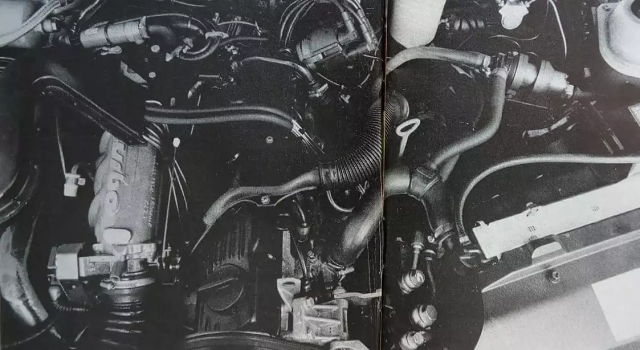 Всё указывает на то, что нынешняя гамма из Ингольштадта перекраивается по принципу «холодной закуски». Меню, случайным образом приправленное как пресными блюдами, так и перцем (к счастью!), в угоду нормам токсичности. Действительно, и это было предсказуемо, 200-сильная турбоверсия — «грязная» — модели Audi 200 уступает место спортивной преемнице с двойным катализатором, 20 клапанами, мощностью 220 чистых сил и комплексным управлением Motronic. Однако пять цилиндров всё так же трудятся в недрах того же чугунного блока объемом 2226 см³, прикрученного продольно с вылетом перед передней осью на подрамнике. В то же время турбомотор от Audi 200 с механическим впрыском K-Jetronic остается в строю с прежней трансмиссией, но предварительно очищенный — его питание теперь шунтировано «катетером» очистки, тем самым лямбда-зондом, — и пересажен на младшую модель, в кузов плоской Audi 100 (так получается «пятицилиндровое попурри» от единственного моториста, верного этой архитектуре уже без малого 14 лет — за исключением прилежного «звездного» бренда, работающего с дизелями (Mercedes-Benz)). Кроме ФРГ, где этот мотор доступен и на базовой Audi 200. Из более колоритных деталей отметим мощный вентилятор обдува форсунок, который заводит свою звонкую партию после интенсивного нагрева при заглушенном двигателе. И гудит он не хуже вентиляции железнодорожного трансформатора!