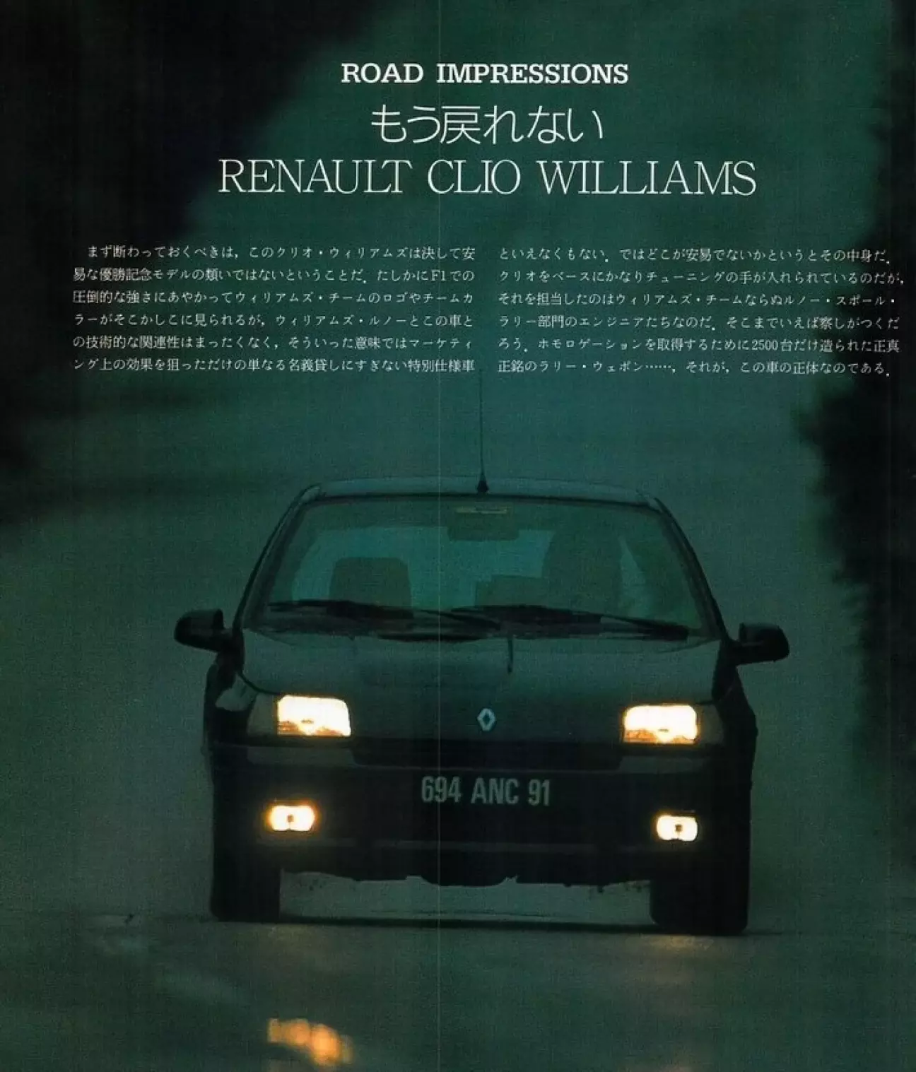 Перевод теста Renault Clio Williams от японского автомобильного журнального издания CAR Graphic, Октябрь, 1993.
