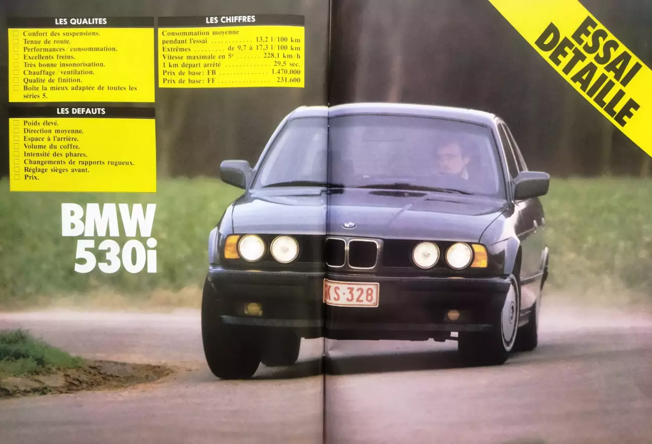Перевод теста BMW E34 530i от бельгийского автомобильного журнального издания Le Moniteur de l’Automobile, № 933, Август, 1989.