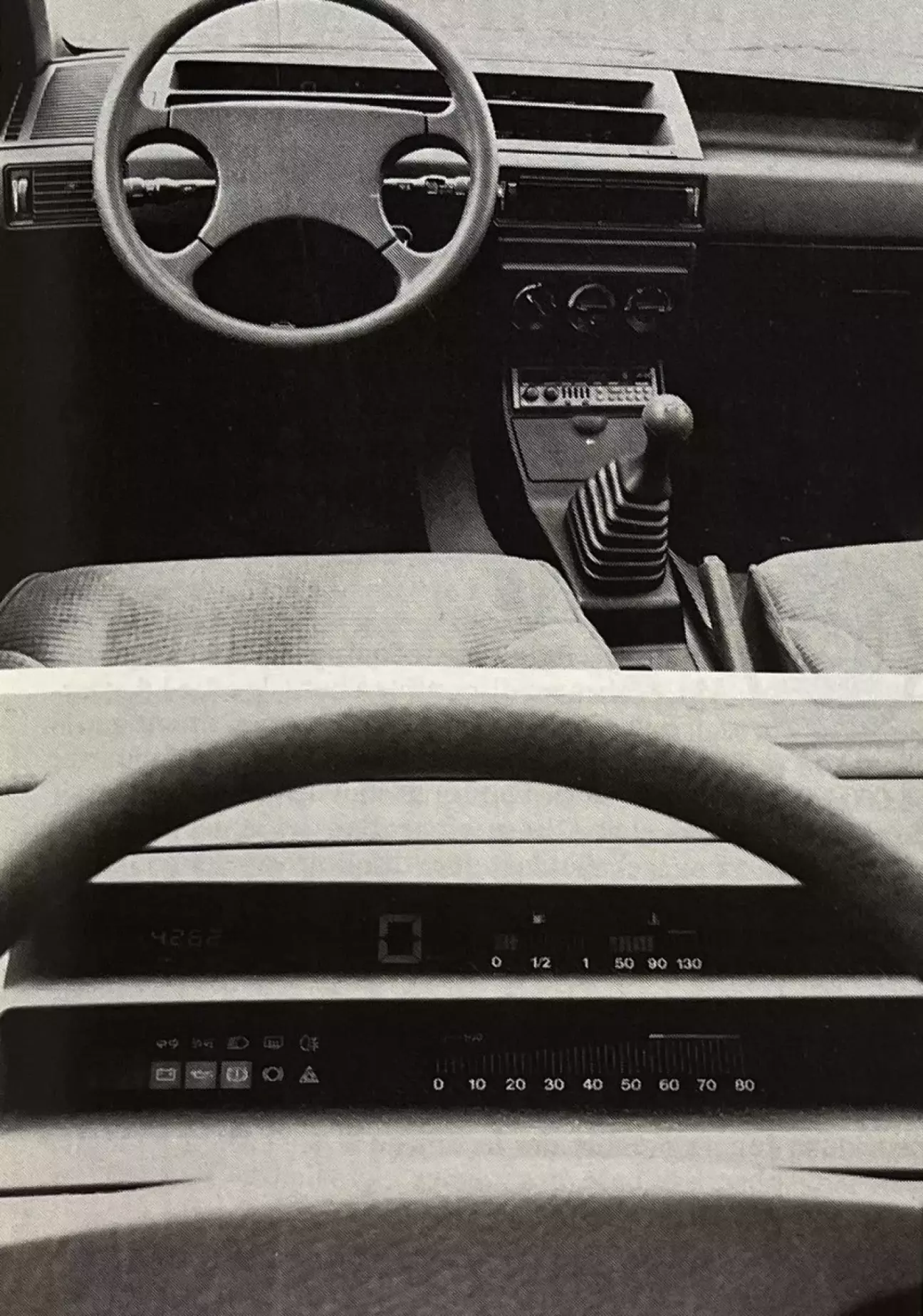DGT обладает на редкость богатым для своей категории оснащением, в чем легко убедиться, просмотрев прилагаемые таблицы. Мы уже касались проблемы двух рычагов слева и справа от рулевой колонки. Трудные в использовании, они к тому же имеют досадную склонность нагреваться (поскольку подсвечиваются), что заставляет опасаться за их надежность. Также требуется период тренировки, чтобы запомнить все режимы работы стеклоочистителя, которые предлагает правый рычаг. Прерывистый режим остается слишком суетливым даже в положении «медленно», а четыре форсунки предпочитают заливать нижнюю часть стекла, как только скорость возрастает. При этом на уровне глаз грязь размазывается и въедается. Однако самый раздражающий аспект этого Tipo — его цифровая приборная панель. Возможно, это превращается в навязчивую идею, но мы не можем убедиться в том, что эти постоянно загорающиеся и гаснущие диоды способны дать лучшую информацию, чем классические аналоговые шкалы. Когда знаешь, что указатель уровня топлива показывает полбака уже через 100 км; что тахометр реагирует с раздражающей медлительностью и к тому же оказывается бессовестно оптимистичным; а спидометр продолжает сомневаться, показывать ли 0 км/ч, когда вы уже 10 секунд стоите на красный свет, становится ясно, что в нем нет никакого смысла. Разве цифровой дисплей не является синонимом точности и быстроты?