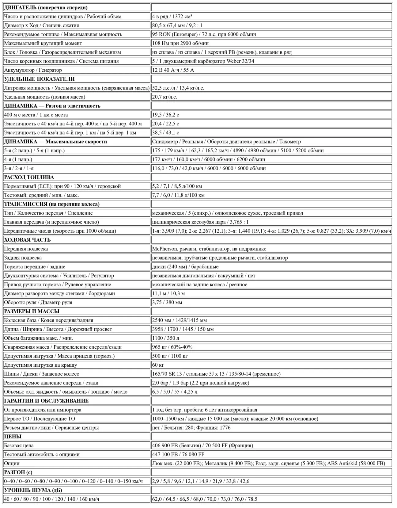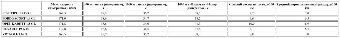 Если верить техническому паспорту, этот двигатель развивает 72 л.с. при 6000 об/мин. Что более важно, этот 1400-кубовый мотор выдает вполне приличный крутящий момент в 108 Нм при 2900 об/мин, о чем свидетельствует очень пологая и, следовательно, удобная в эксплуатации кривая момента. Производитель заявляет максимальную скорость 161 км/ч, 13,0 с для разгона до 100 км/ч, прохождение километра с места за 34,7 с и ту же дистанцию с ходу (с 40 км/ч на 4-й передаче) за 37,5 с. Скажем сразу: нам не удалось повторить все эти результаты. Набравшись терпения и усердно тренируя мышцы правой ноги, мы зафиксировали максимальную скорость на отметке 162 км/ч, но на разгон до «сотни» с места ушло 15 с. Километр с места был пройден за 36,2 с, в то время как на эластичность — преодоление 1000 м с 40 км/ч на 4-й передаче — потребовалось 38,5 с. При переходе на высшую передачу на это же упражнение уходит и вовсе 43,1 с. Отметим, впрочем, что другой 1.4 DGT, испытанный в прошлом году для нашего «Ежегодного гида», проявил себя бодрее. Кстати о «Гиде»: самое время поспешить к ближайшему газетному киоску, издание 89/90 уже в продаже (осторожнее на дорогах!). Тем не менее этот 1400-кубовый агрегат демонстрирует живость и эластичность, но его потенциал слегка ограничен «растянутыми» двумя высшими передачами — 4-й и 5-й. Впрочем, он вполне достойно выглядит на фоне конкурентов, особенно если учитывать спокойный (в плане моторизации) характер этой базовой версии.