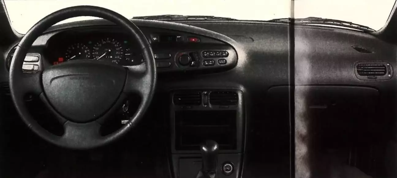 Особенно удачно выбрано расположение органов управления системой кондиционирования, входящей в стандартное оснащение. Поворотные рукоятки регулировки температуры и интенсивности обдува работают очень четко; удобны и кнопки (все с подсветкой) распределения потоков и включения рециркуляции. Если и можно за что-то покритиковать, так это за слишком малые размеры дефлекторов на передней панели и отсутствие автоматического управления направлением потоков. Под рукой и, разумеется, с подсветкой находятся клавиши стеклоподъемников и электропривода зеркал на подлокотнике водительской двери. Удачно расположена и кнопка аварийной сигнализации, отлично видимая в центре консоли. А вот выключатель обогрева сидений на центральном тоннеле перед рычагом КПП, как и кнопки на окантовке приборного щитка (скрытые ободом руля), отвечающие за обогрев заднего стекла и задние противотуманные фары, находятся не сразу. Сами приборы отлично читаются благодаря четкой традиционной графике: всего четыре шкалы (спидометр, тахометр, указатель температуры охлаждающей жидкости и уровня топлива) плюс блок контрольных ламп, который кажется неполным. Не хватает, например, индикаторов износа тормозных колодок и включенного ближнего света. В оснащении также не предусмотрены система контроля параметров (check control) и бортовой компьютер.