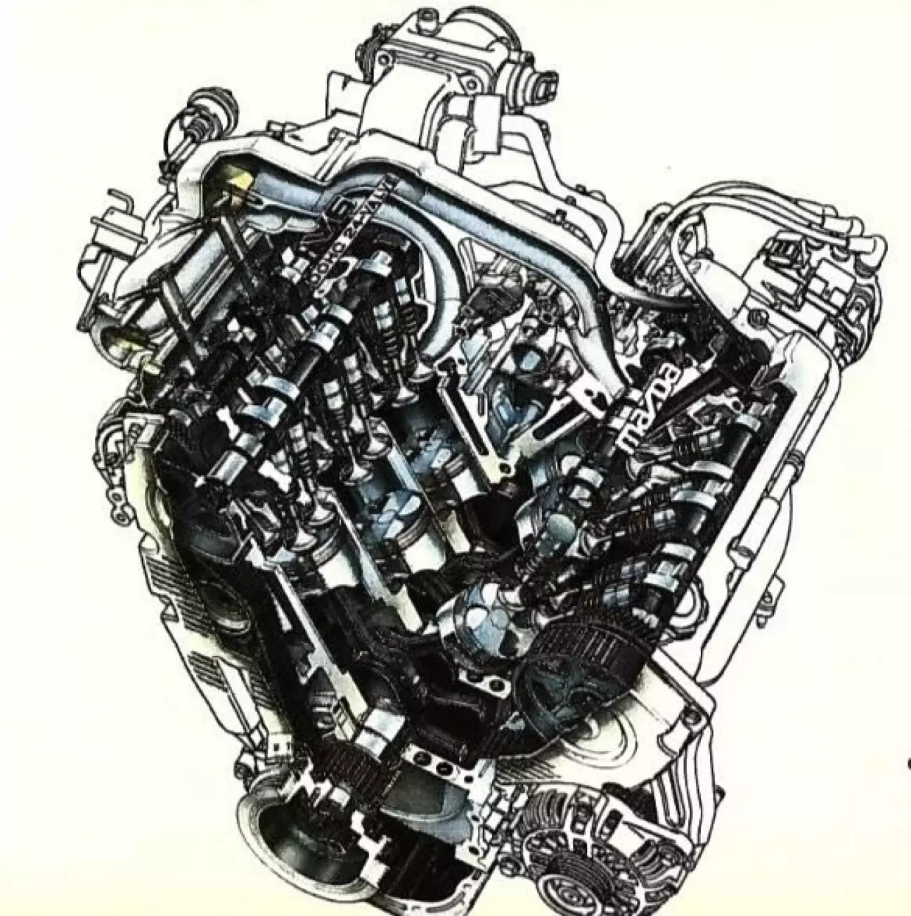 В последние годы японцы часто приучали нас к техническим решениям удивительной оригинальности и эффективности. XEDOS 6 обладает достоинством представлять одни из самых изысканных из них. Достаточно вспомнить двухлитровый (1995 см3) 6-цилиндровый V-образный двигатель. Помимо необычного сочетания относительно малого рабочего объема с архитектурой, обычно зарезервированной для гораздо более крупных агрегатов, он может похвастаться интересной системой изменения геометрии впуска. Воздух подается в цилиндры с разной скоростью в зависимости от режима оборотов двигателя, используя эффекты резонанса, возникающие при изменении пути прохождения по каналам. Это обеспечивает лучшее наполнение камер сгорания и, как следствие, оптимизацию процесса горения. Часть заслуги принадлежит не менее сложной многоклапанной системе питания (четыре клапана на цилиндр, всего двадцать четыре) с распределённым впрыском — названным так потому, что бензин впрыскивается в каждый цилиндр в нужный момент и в точной дозировке.