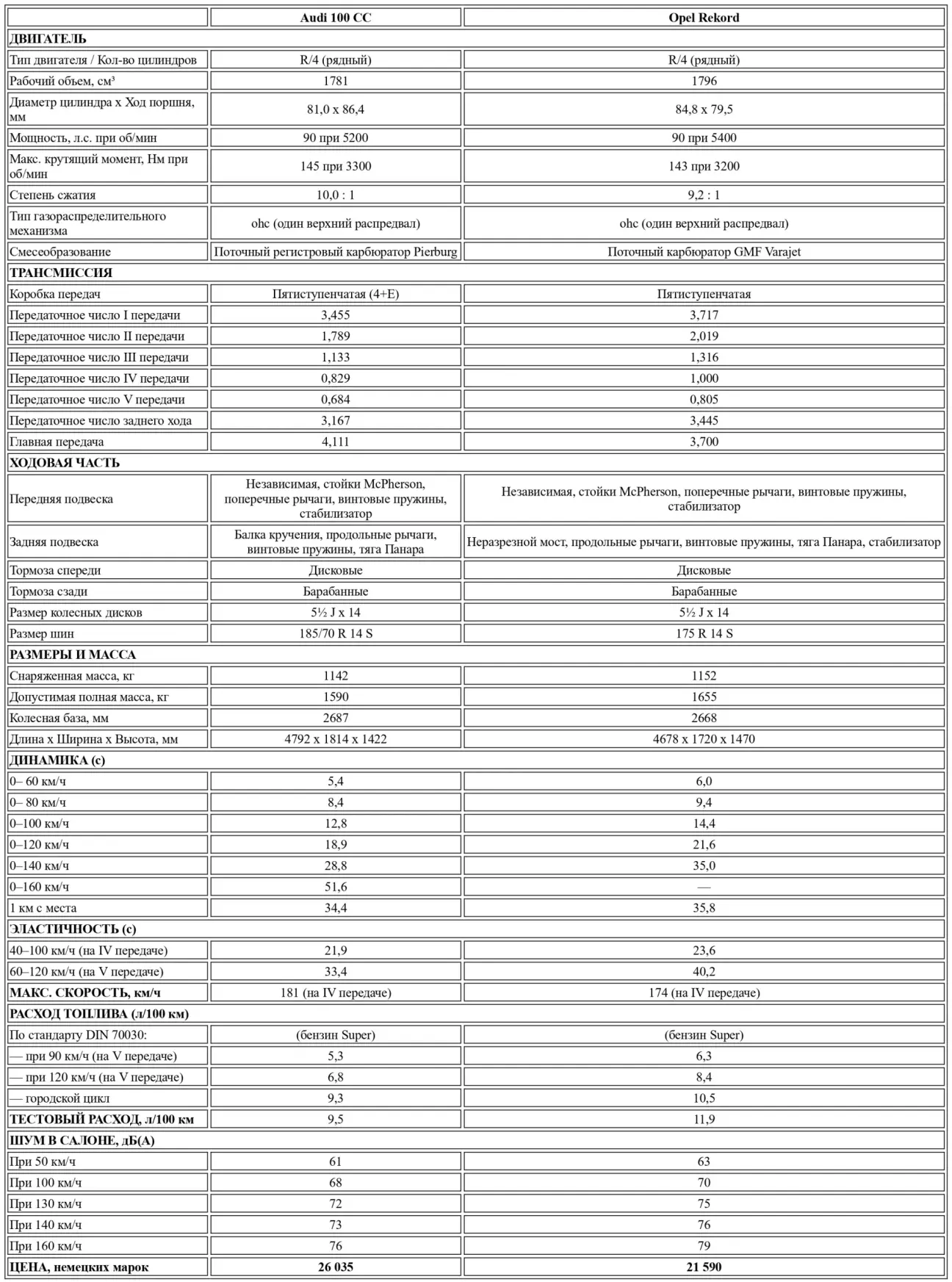 ДОСТОИНСТВА Opel Rekord в сравнении с Audi 100: