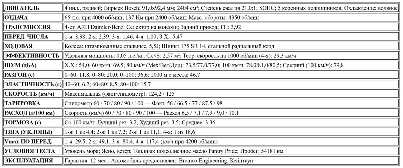 Перевод теста Mercedes W123 240D на подсолнечном масле от южноафриканского автомобильного журнала CAR, Октябрь, 1979.