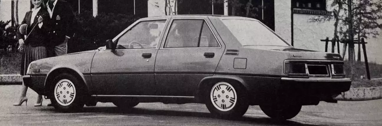 Mitsubishi Tredia прибыла к нам осенью. Это был совершенно новый автомобиль среднего класса, занявший место между Colt и Lancer и имеющий много общих черт с последним. Tredia заимствует у Colt ряд технических решений, таких как поперечное расположение двигателя и коробки передач, причем последняя оснащена системой super shift, уже знакомой по Colt GLX 1400. Подвески также напоминают Colt: стойки McPherson спереди и U-образная балка сзади, выполняющая роль стабилизатора поперечной устойчивости.