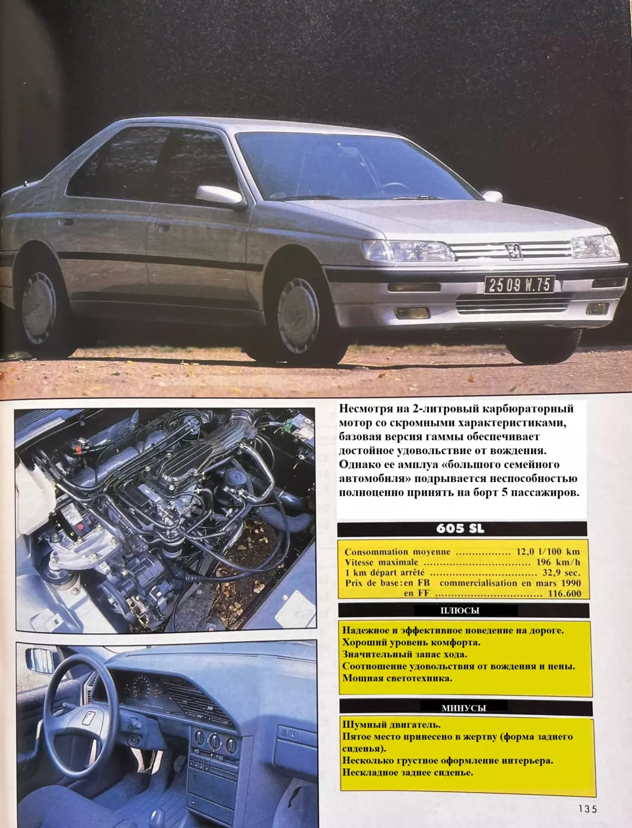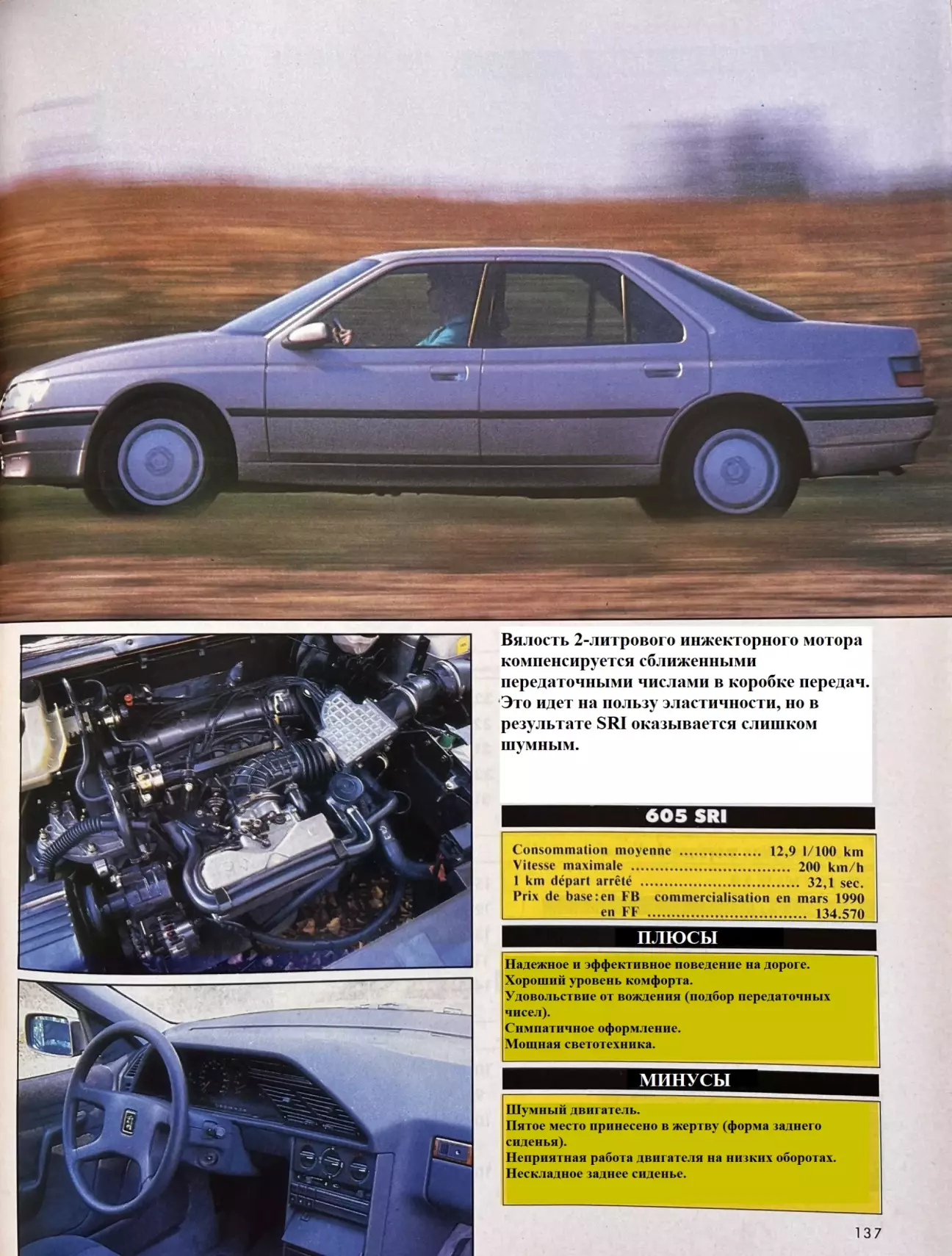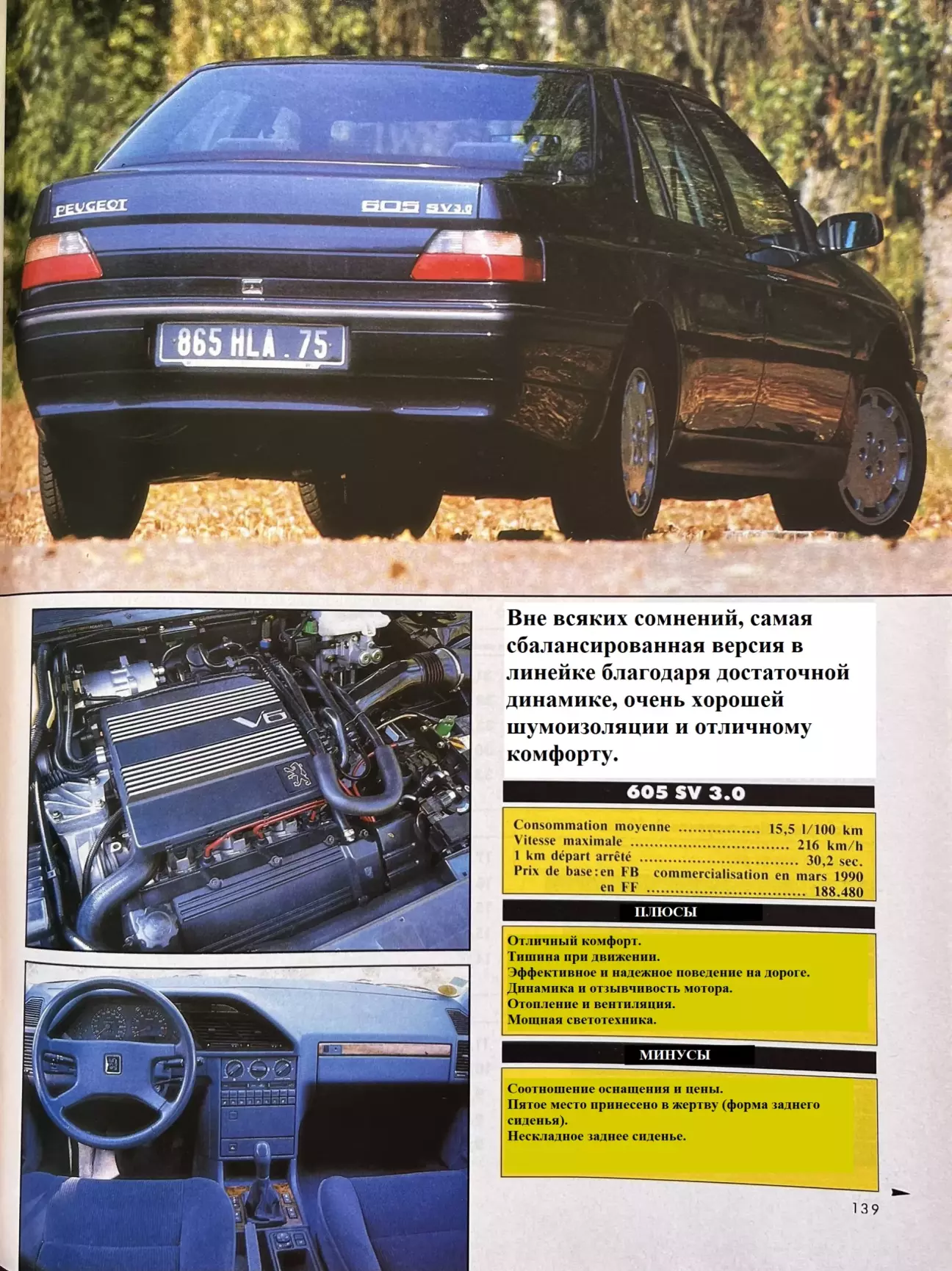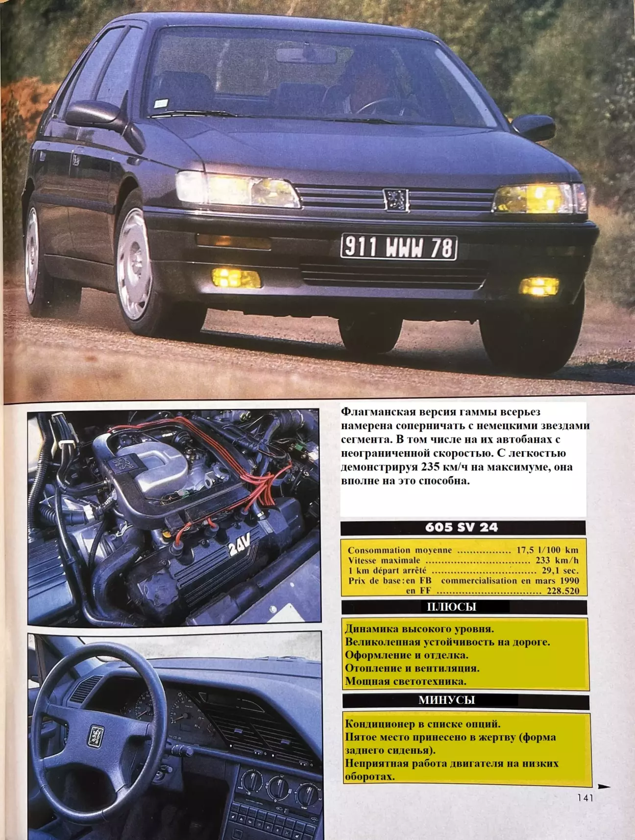 Перевод теста Peugeot 605 SL/SRI, SV 3.0, SV24 от бельгийского автомобильного журнального издания Le Moniteur de l’Automobile, № 935, Сентябрь, 1989.