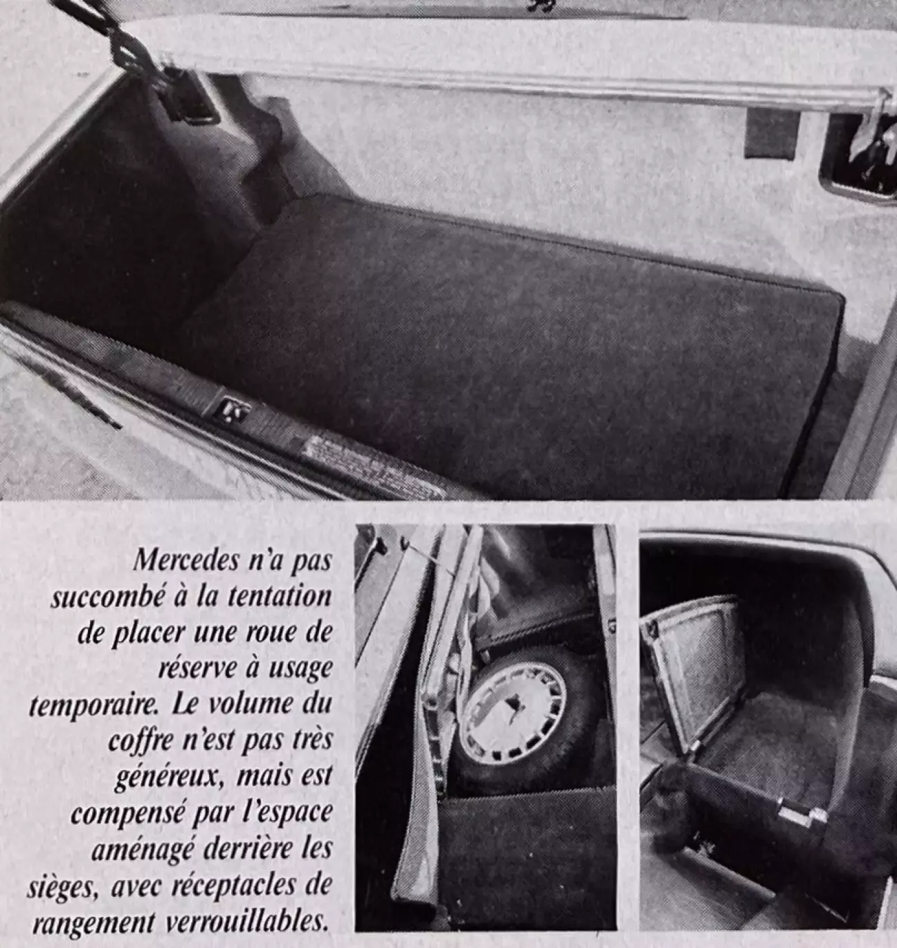 Чтобы скрасить диалог пары, Mercedes позаботился об удобстве пассажиров, предусмотрев массу мест для хранения (с автоматическим запиранием через центральный замок): в каждой двери, на передней панели, в основании центральной консоли (для очков), внутри самой консоли и под полом небольшого заднего отсека. Кроме того, предусмотрено множество независимых источников освещения, раздельное управление отоплением и вентиляцией, центральный замок с дистанционным управлением, действующим на двери и багажник, а также закрывающим окна, и так далее. Общее качество отделки, разумеется, находится на высоком уровне, но некоторые детали всё же удивляют: солнцезащитные козырьки абсолютно бесполезны при взгляде вперед, полностью перекрывая обзор в опущенном состоянии; если ночью не выключить полностью подсветку приборов и кнопок, индикатор наружной температуры отражается в лобовом стекле, а контрольные лампы — в боковом стекле прямо на уровне зеркала; спинки сидений могут лишь наклоняться назад, но не раскладываются в «спальное» положение; в солнечную погоду при закрытом верхе (как жестком, так и мягком) вентиляция свежим воздухом недостаточно эффективна; и т.д. Наконец, хоть это и частный случай, обилие электромоторов, возможно, способствует комфорту, но только пока они не выходят из строя: мы столкнулись с невозможностью закрыть мягкий верх электроприводом, а впоследствии — снять жесткий верх из-за неисправности, вероятно, пустяковой, но крайне досадной...