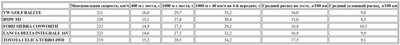 Тем не менее, автомобиль всё же носит имя Rallye, что побудило нас оценивать его в сравнении с теми, кто создавался непосредственно для гонок. Моно- или полноприводные, по алфавиту: BMW M3, Ford Sierra Cosworth, Lancia Delta Integrale и Toyota Celica Turbo 4WD кажутся нам прямыми конкурентами как на дорогах общего пользования, так и на спецучастках. Сразу отметим, что Volkswagen — самый доступный в этой компании.
