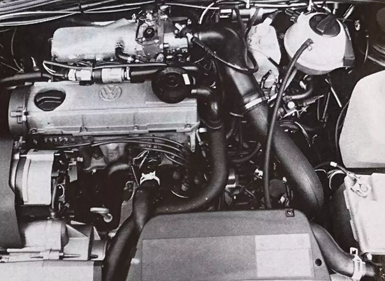 Производство нагнетателей типа G, должно быть, достигло удовлетворительных темпов, раз теперь он устанавливается на три модели в гамме: купе Corrado, Passat G60 и Golf Rallye (в ожидании компрессорного Golf с приводом на одну ось). Мотористы не стали слишком утруждать себя: двигатель остается строго идентичным на всех трех моделях, за исключением небольшой разницы в рабочем объеме — 1763 см³ против 1781 см³. Это позволит гоночному автомобилю сбросить 80 килограммов, перейдя на одну ступень ниже в весовой шкале, разработанной FISA для омологации. Данное изменение, достигнутое за счет уменьшения диаметра цилиндра на 0,4 мм, никак не влияет на характеристики двигателя, который сохраняет мощность 160 л.с. при 5600 об/мин и максимальный крутящий момент 225 Нм при 4000 об/мин. Эти цифры могли бы выглядеть заманчиво в категории «GTI» — сразу вспоминается старая Mazda 323 4WD Turbo, которая действительно продавалась по цене GTI. Но несмотря на турбонаддув и 16 клапанов, она так и не смогла потревожить Delta в соревнованиях. Golf же предлагается по тарифу «ультра-спорткаров», хотя имеет всего по 2 клапана на цилиндр, а его дефицит мощности достигает 40 л.с. по сравнению со стандартами класса.