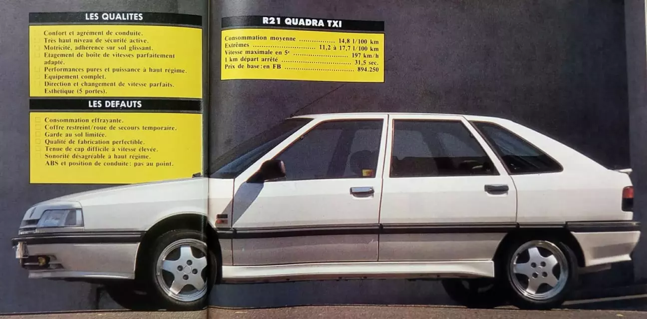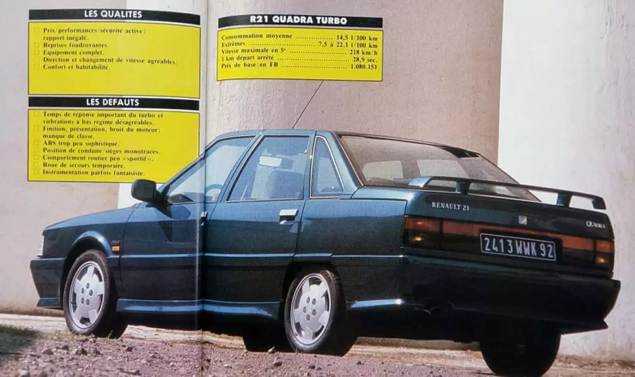 Перевод теста Renault 21 Quadra TXI / 2L Turbo от бельгийского автомобильного журнального издания Le Moniteur de l’Automobile, № 938, Ноябрь, 1989.