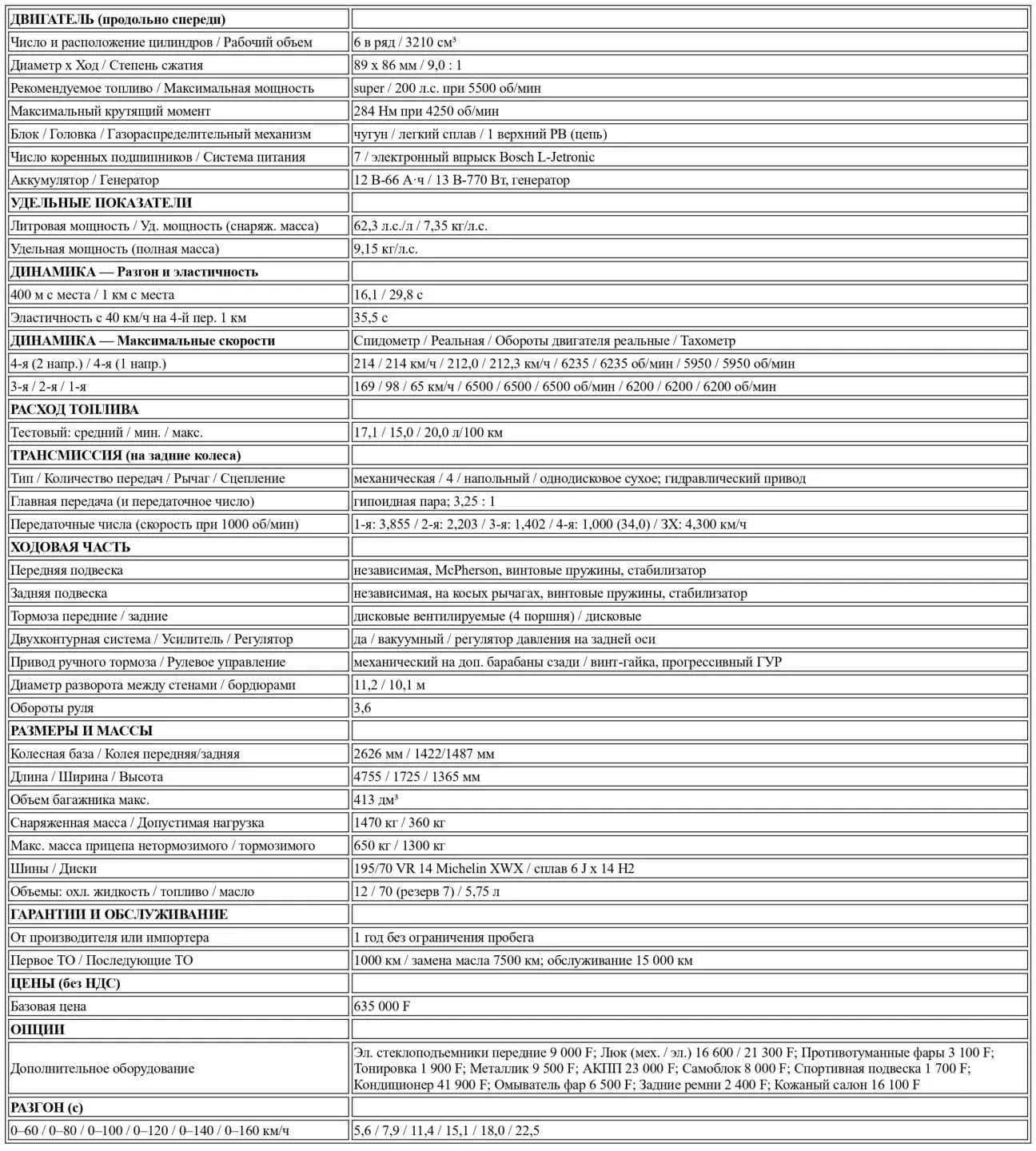 Что касается аппетита, то он остается весьма умеренным, учитывая возможности машины. Два замера на дистанциях более тысячи километров каждый дали следующие результаты: 17,1 л/100 км в смешанном цикле на тестовом автомобиле и 16,6 л/100 км на 633 CSi с самоблокирующимся дифференциалом по итогам преимущественно трассового пробега в очень высоком темпе. Эти цифры наглядно иллюстрируют прогресс в области электронного впрыска.