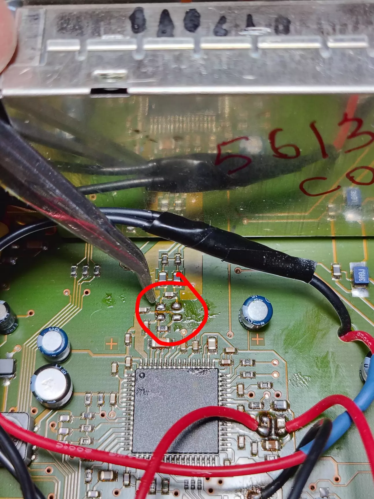 Ну а щоб сигнал від радіо не "підмішувався" то прибираємо два конденсатори біля радіомодуля і тим самим перериваємо доріжки