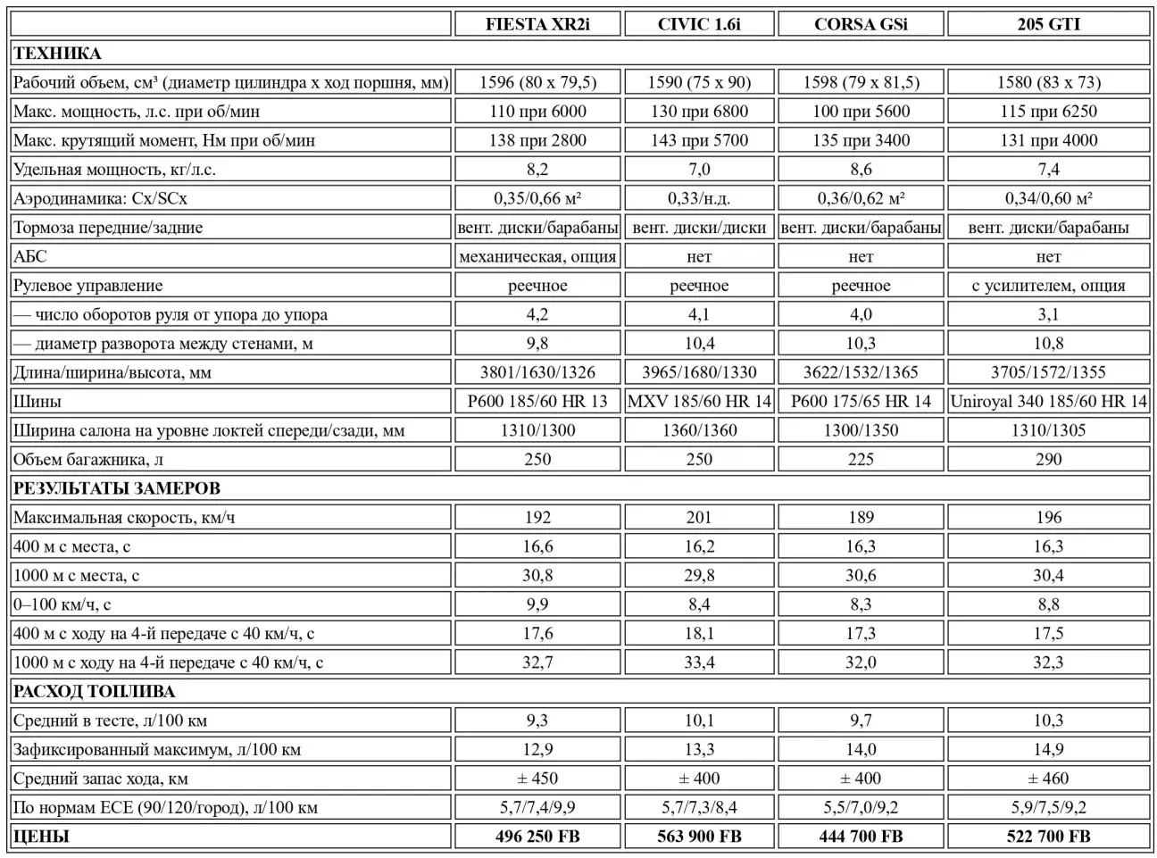 Перевод теста Ford Fiesta mk3 XR2i vs Honda Civic vs Opel Corsa A GSI vs Peugeot 205 GTI от бельгийского автомобильного журнального издания Le Moniteur de l’Automobile, № 940, Декабрь, 1989.