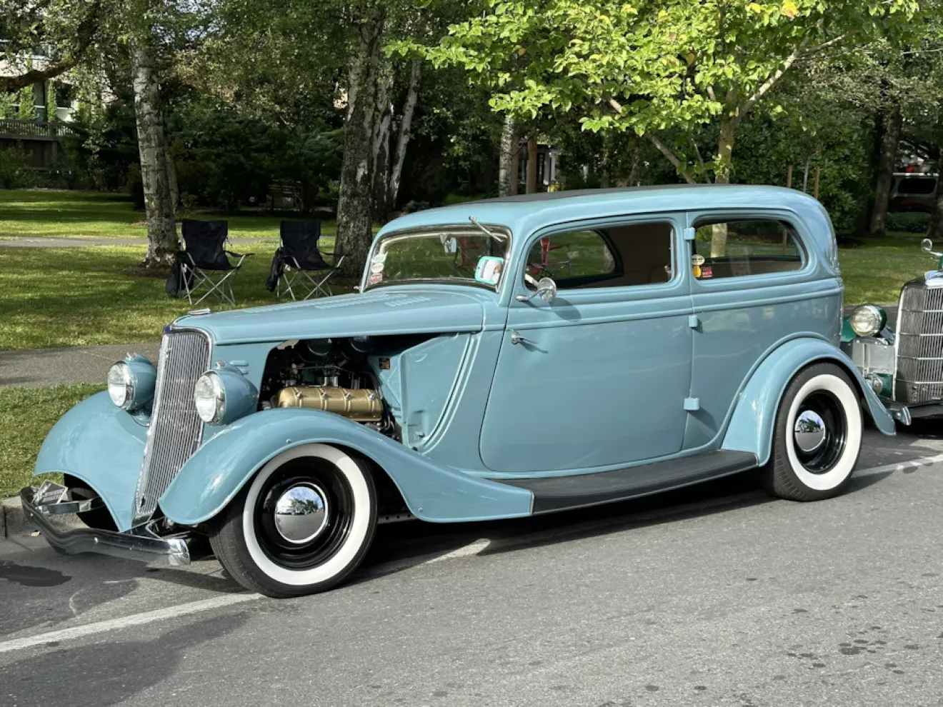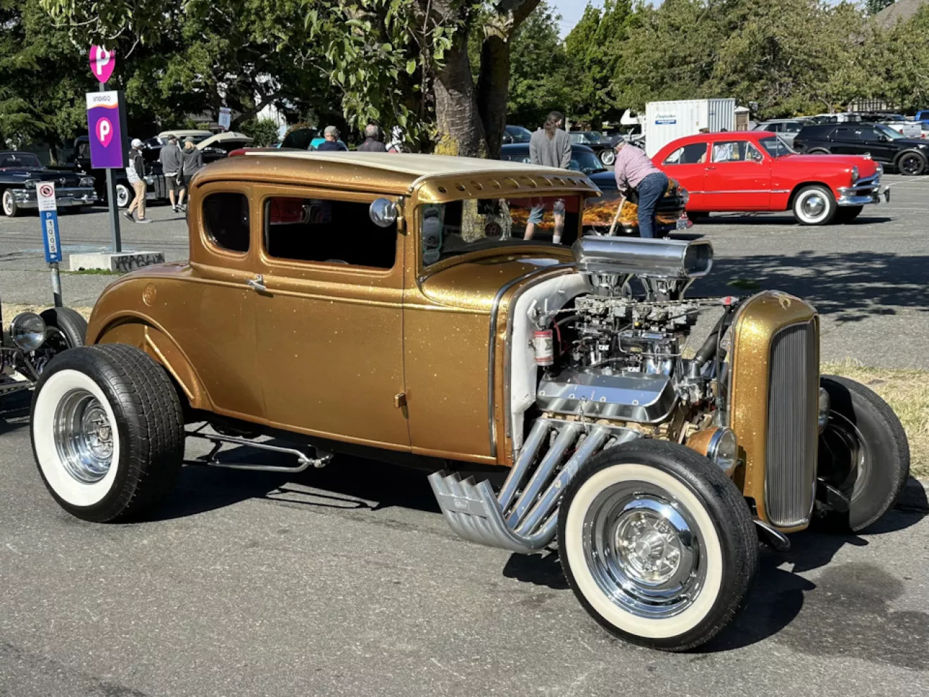 Последний день — воскресенье 20 июля, проводилась итоговая выставка участников. После нескольких дней мероприятий, вечеринок, круизинга — можно было пройтись и хорошенько рассмотреть уже знакомые машины. Мы подьехали в центр к 8 утра — заполненность была уже близка к 80%. Люди занимали места с трех-четырех утра. Мы встали немного с краю и я пошел сразу фоткать, пока не налетела толпа. Первый час-полтора облачным утром — превосходная возможность для фотографирования. Людей еще мало, свет рассеянный, поэтому я ходил от машины к машине и просто фотал их всех почти подряд. Т.к. я знал что еще вернусь, сперва решил просто все хорошо сфоткать и когда будет толпа уже посмотреть поближе.