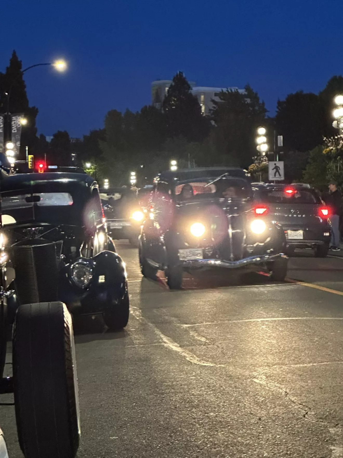 С начала дня туда подтягивались первые участники, мы приехали к вечеру — машин уже было прилично (но как оказалось это даже не была треть приехавших). Вскоре машин и посетителей стало так много, что регистрация превратилась в фестиваль на открытом воздухе. Так я побывал на "том самом" круизинге — то что мы когда-то пытались воспроизвести еще в Якутске. Смысл круизинга — есть популярное место в городе, например длинная центральная улица вдоль уже закрытых на ночь бизнесов, муниципальных зданий и т.д. Машины встают по обочинам, машины медленно, со скоростью пешехода, едут вдоль.