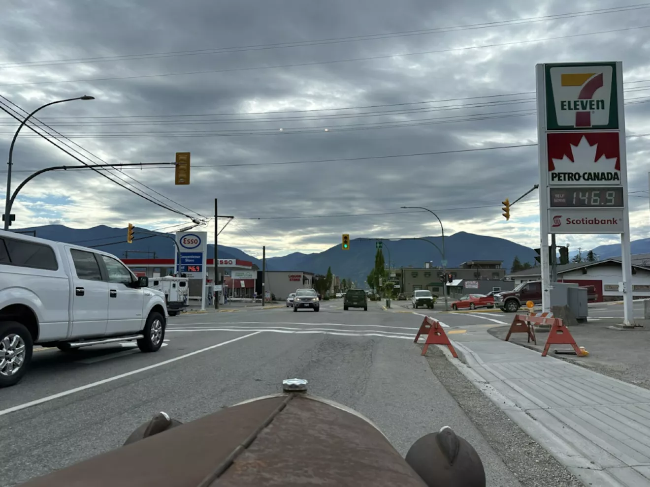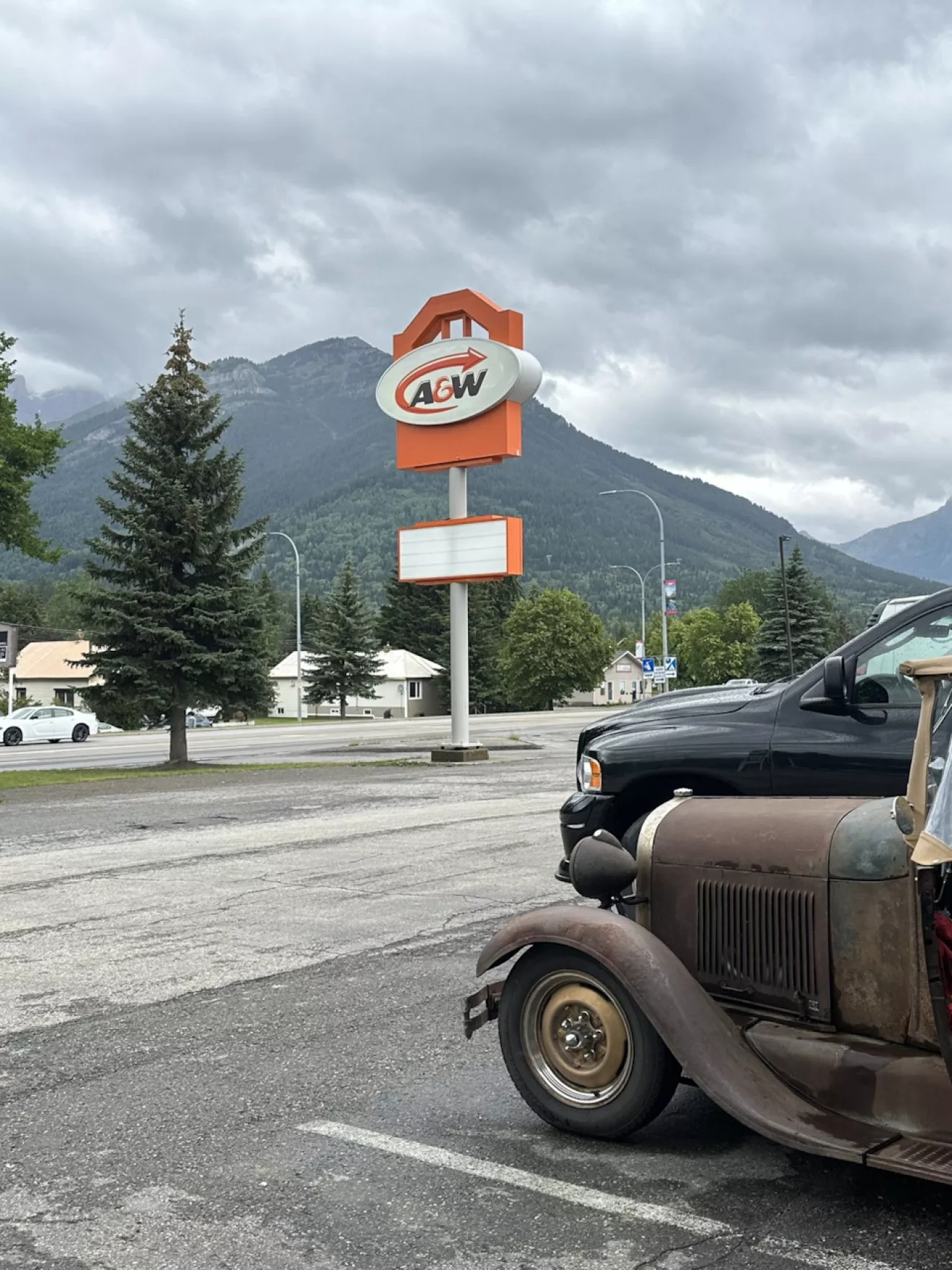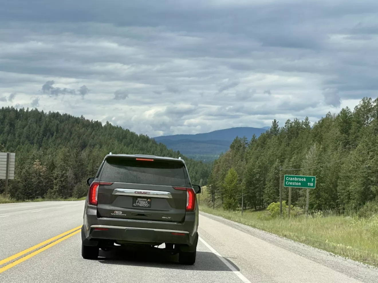 В целом в машине было сухо, сами не промокли, но вода просачивалась сверху лобовухи в щель под крышей и текла вниз мешая обзору. Приходилось постоянно протирать стекло. По ходу поездки навещали знакомых в Летбридже (Альберта) — там же и начались Скалистые горы. День завершился только уже в темноте, под ливнем, в городке Ферни на востоке Британской Колумбии.