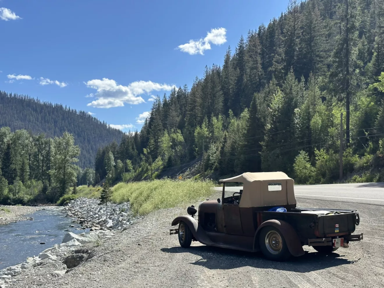 Билл в 2021 году достроил своими и не своими руками родстер пикап из Форда А 1928 года, на родной усиленной раме, 4-рычажной подвеской спереди и сзади, с 283-им шеви-смоллблоком, 4-скоростной коробкой Saginaw от чего-то из 70ых, производства GM. На нем он поучаствовал в Deuce Days в 2022-м, поехал и в этот раз. Я присоединился в роли пассажира и помощника в одну сторону (а обратно на самолете).