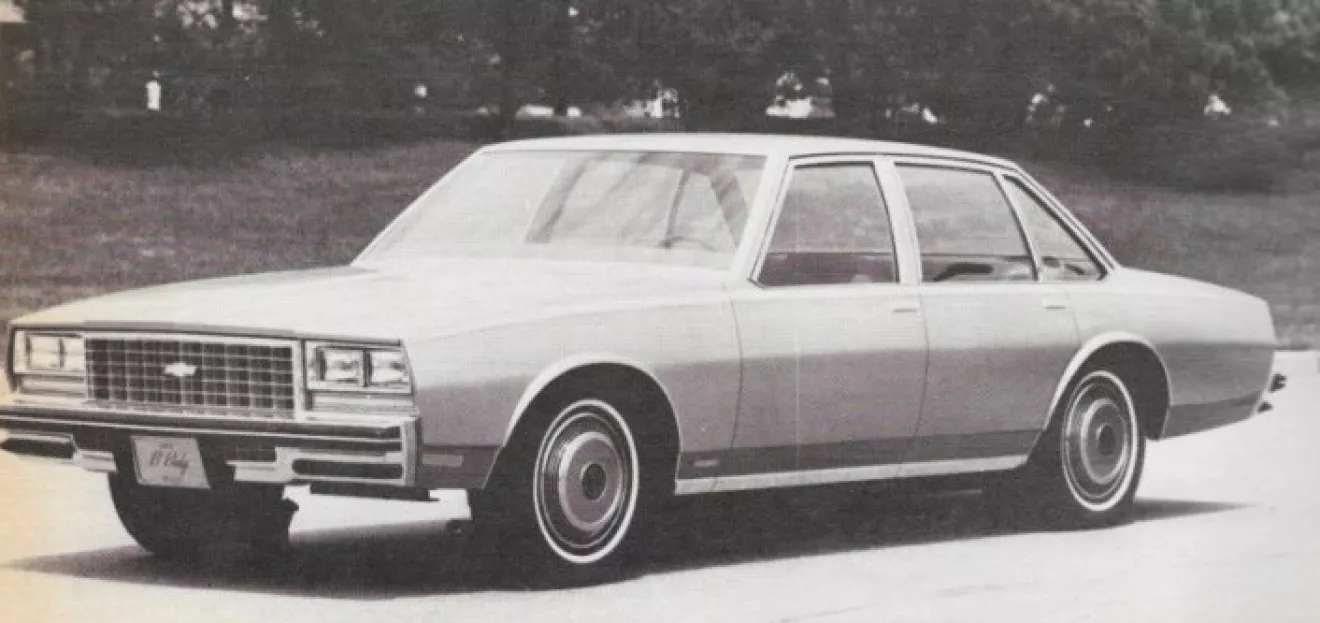 К моменту выпуска, его в чем-то европейский стайлинг был серьезно отредактирован – например, 6-оконная компоновка была упразднена и заменена на традиционную 4-оконную, в угоду массивности. Наклоненная в обратную сторону лицевая панель была также сменена на очень сбалансированный и представительный передок, созвучный с моделью Caprice 1975-76 годов, а также с недавними «кадиллаками» — посткризисный покупатель мог болезненно встретить «усушку», где излишняя авангардность только подчеркивала даунсайзинг. Аналогичное решение было применено для кормы, где широкая оптика и массивный бампер создали тот самый каноничный американский облик большого автомобиля 80-ых. Однако, все эти наработки не пропали и были частично внедрены на новую среднеразмерную модель Malibu, стартовавшую в 1978 году.
